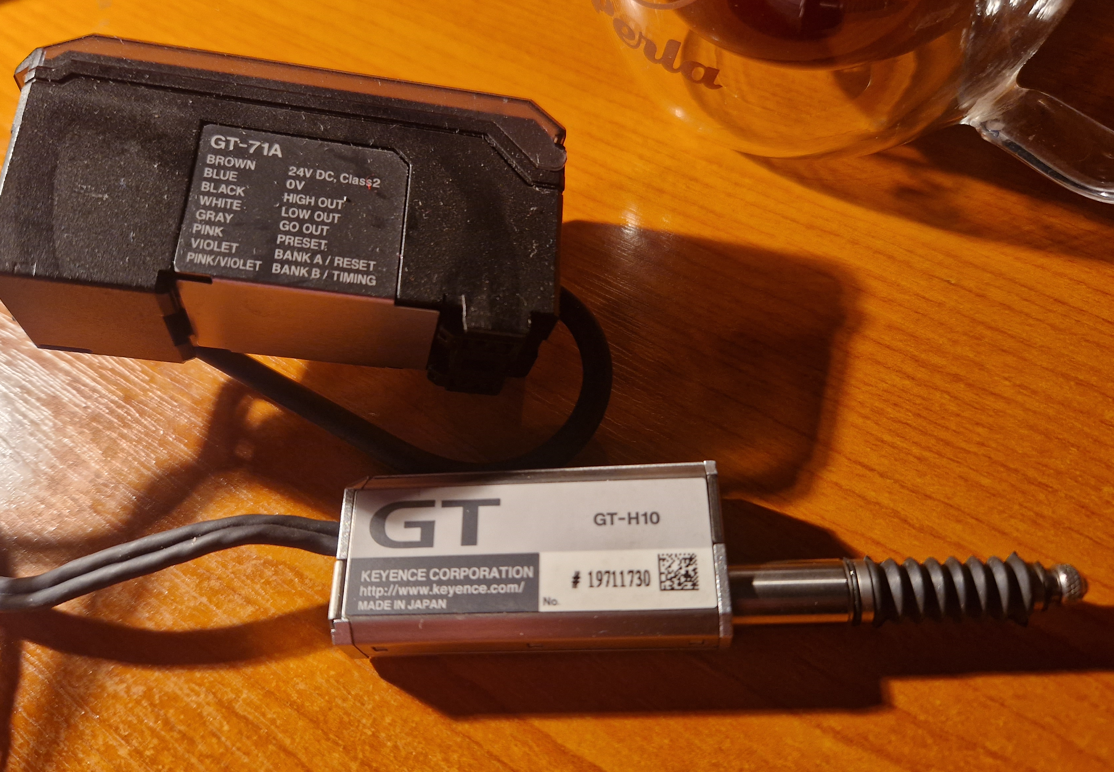 Ten Keyence je přenosné dotykové měřidlo. Takové kleštičky se sondou GT // myslím 3um //. Blbé tedy je, že za sebou taháš kablík, ale měří se s tím luxusně.