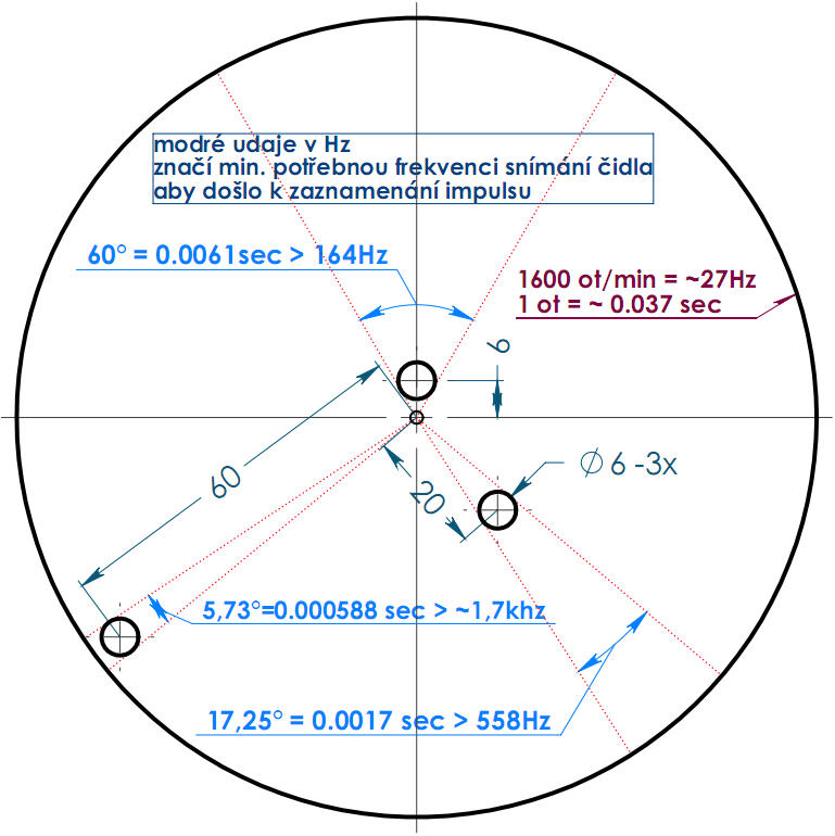 .xxx. chce neobratne rict ze kdyz zvetsis prumer na kterem mas tu diru a nezvetsis patricne tu diru tak mas stale stejny kmitocet pri stejnych otackach ale ta dira tam problikne kratsi dobu protoze se na tom obvodu pohybuje rychleji tedy impuls bude kratsi coz muze ve finale vyrobit problem s detakci impulsu