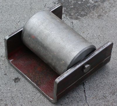 Moje FA4V má na štítku 2650 kg, ale hlava byla zvlášť a chyběly motory, takže skutečně necelých 2,5 tuny. Pro paleťák teda už celkem dost. Navíc plaeťák jinak nepotřebuji. Pro stěhování jsem si ukutil 4 podvozky viz obrázek, je to vlastně kousek U-traverzy, váleček a osa. Podlaha v garáži je mizerná, takže jsem musel postavit provizorní dráhu z fošen a na nich 3 mm plech, aby to jelo. Zdvihání pomocí 4t-hydraulické panenky. Protože vozíky nemají valivá ložiska, tak pohnout s tím šlo jen pomocí páky cca 1/10. Výhoda kluzných vozíků je, že to nemůže nechtěně ujet.
