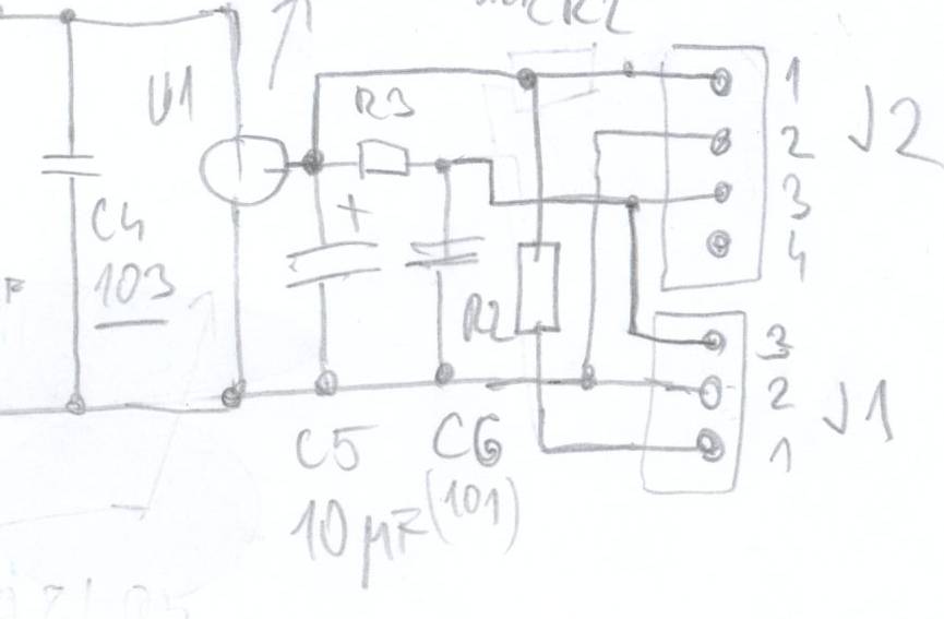 Zhruba asi podle přílohy. Stabilizátor U1 vyhodit, stabilizovaných 5V třeba na ten elektrolyt (C5) nebo J2.