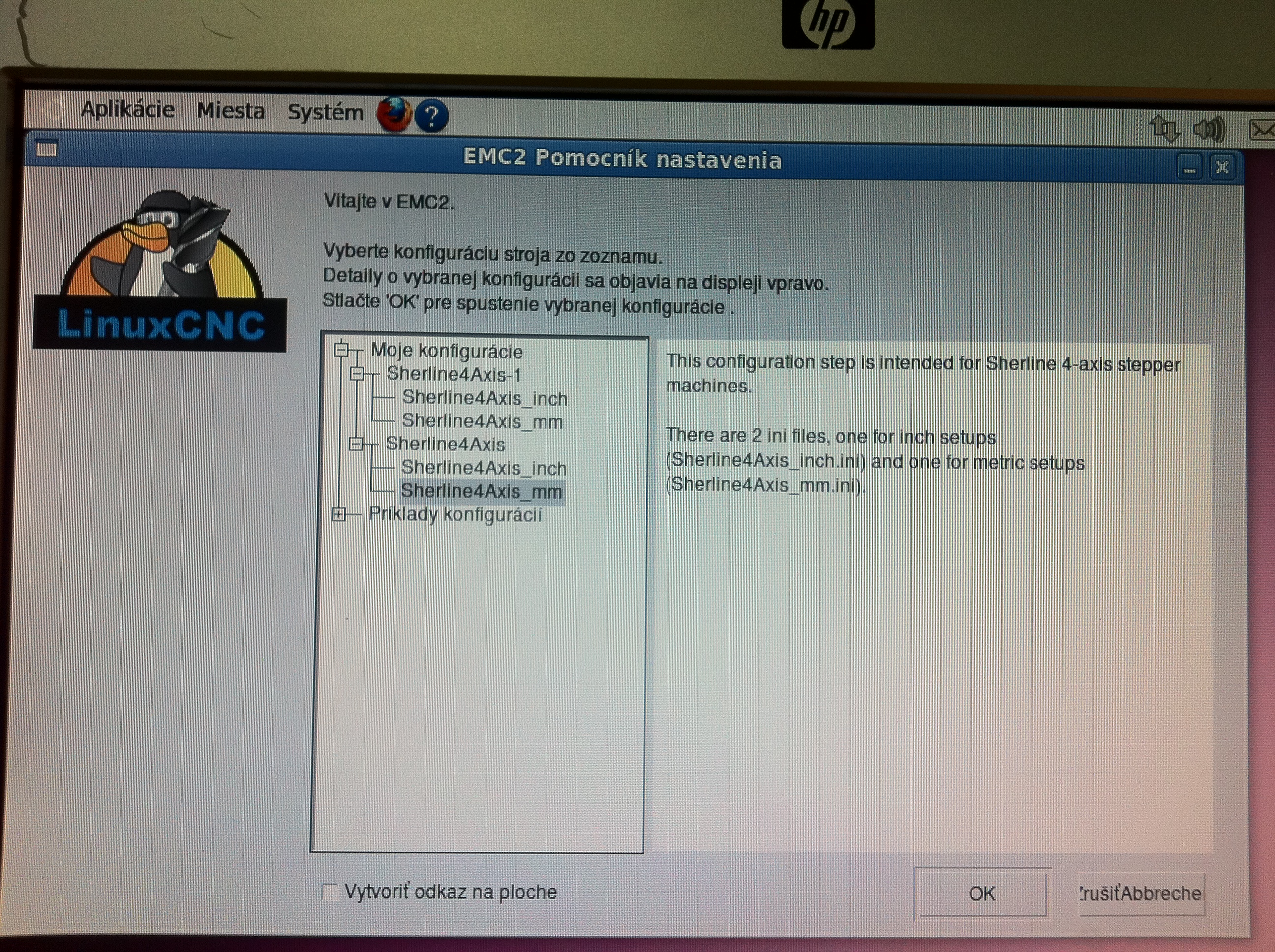 Packa: aku konfiguraciu spustim? predvolenu, spustim sherline4axis mm, vid foto vyssie..