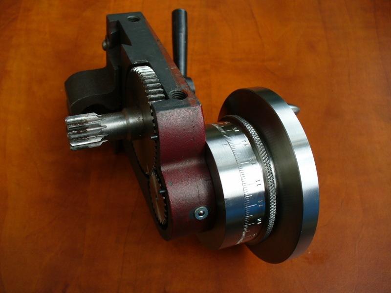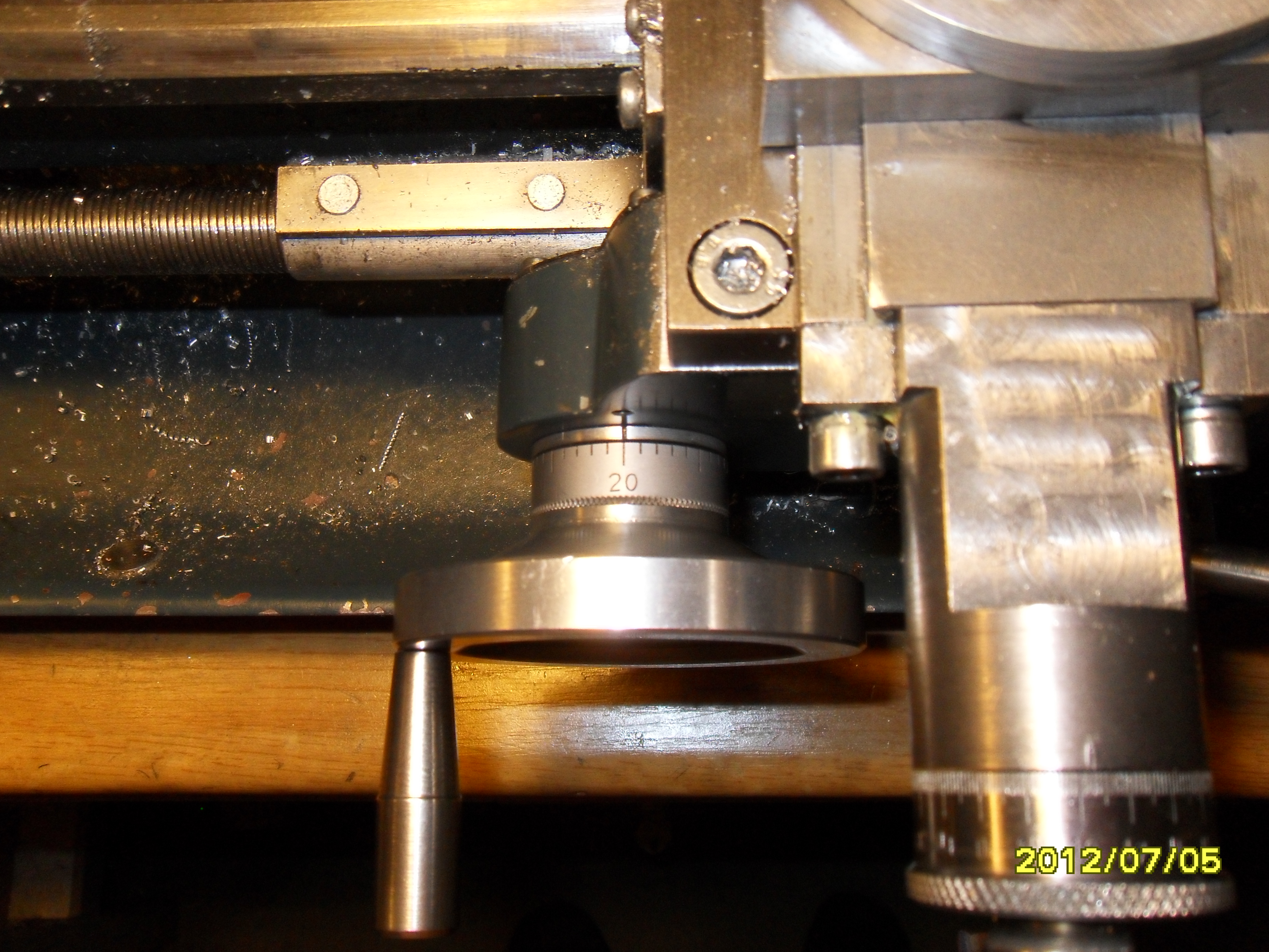 Mám klon soustruhu z roku 2006, dovážený firmou Noell a také je tam ložisko viz foto od kolegy Potraviny. Jedna otáčka je těch 20 mm a z toho vyplýva poměr ozubených koleček.Upevnění hřebene jsem také upravoval, hřídelka nevaklá a tak by mě stačil prstenec nonia o maximálním vnějším průměru 40 mm a vnitřím třeba 25-30mm.Dělení 20 dílků. A vyrobil bych si nové kolo, max. bych musel posunout na hřídelce zahloubení směrem ke konci.Na litinovém tělese by stačil terčík se špičkou.Tumlík zatím nabízí variantu pro ty méně šťastné, kteří nemají ložisko. A nám nezbývá než si nakreslit svoji variantu a nonius objednat u Tumlíka.(leda, že by byl Tumlík rychlejší a nabídl svoji variantu. :)