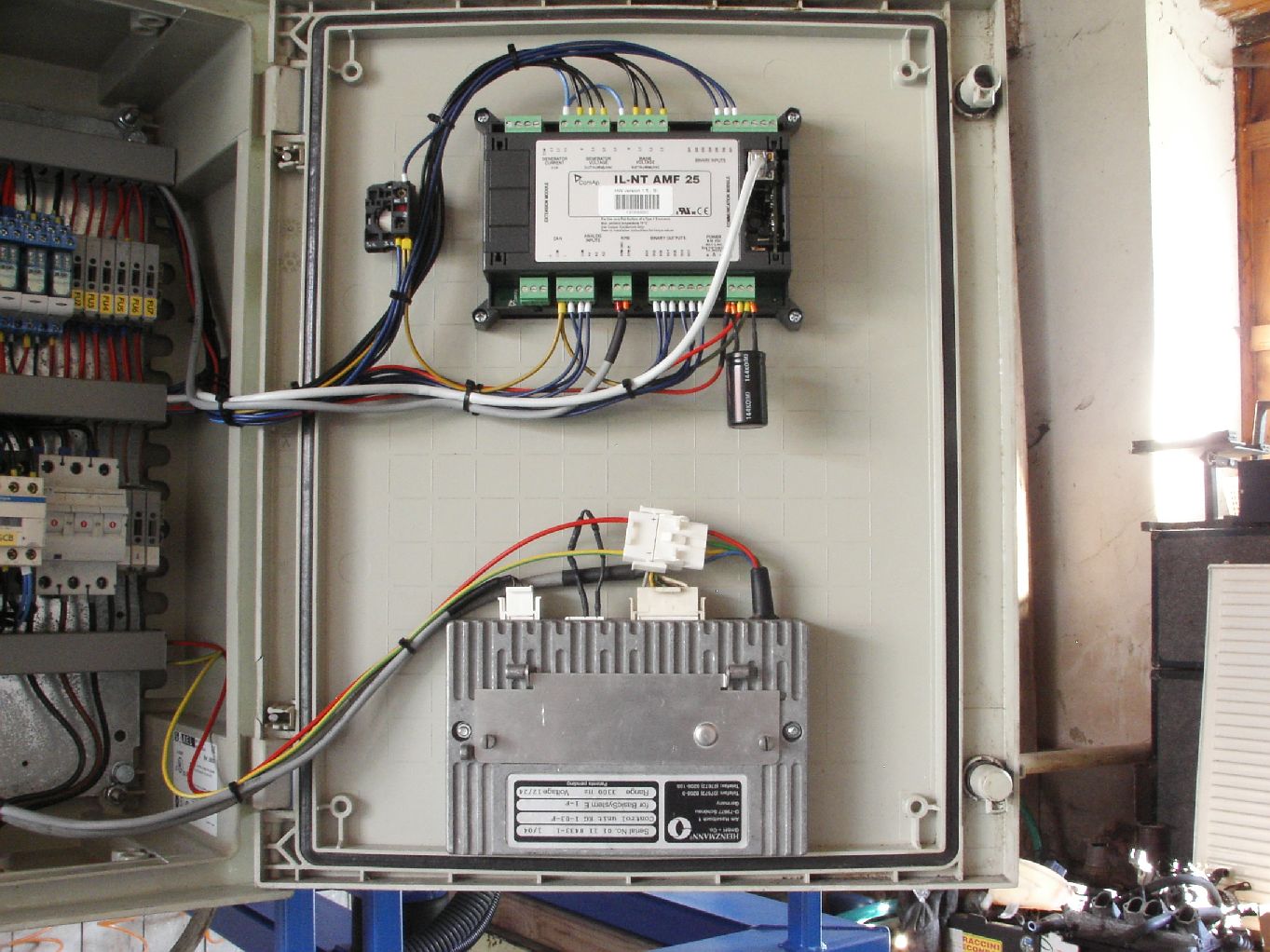 f) paralelní provoz se sítí v režimu "dodávka" není možný protože Inteli Lite AMF25 od ComApu neumí fázovat (nemá synchrotakt - je to kontrolér určený pro automatický záskok - Automatic Mains Failure), musel by být použit kontrolér Inteli Compact NT (ten toto umí ale stojí jednou tolik peněz).