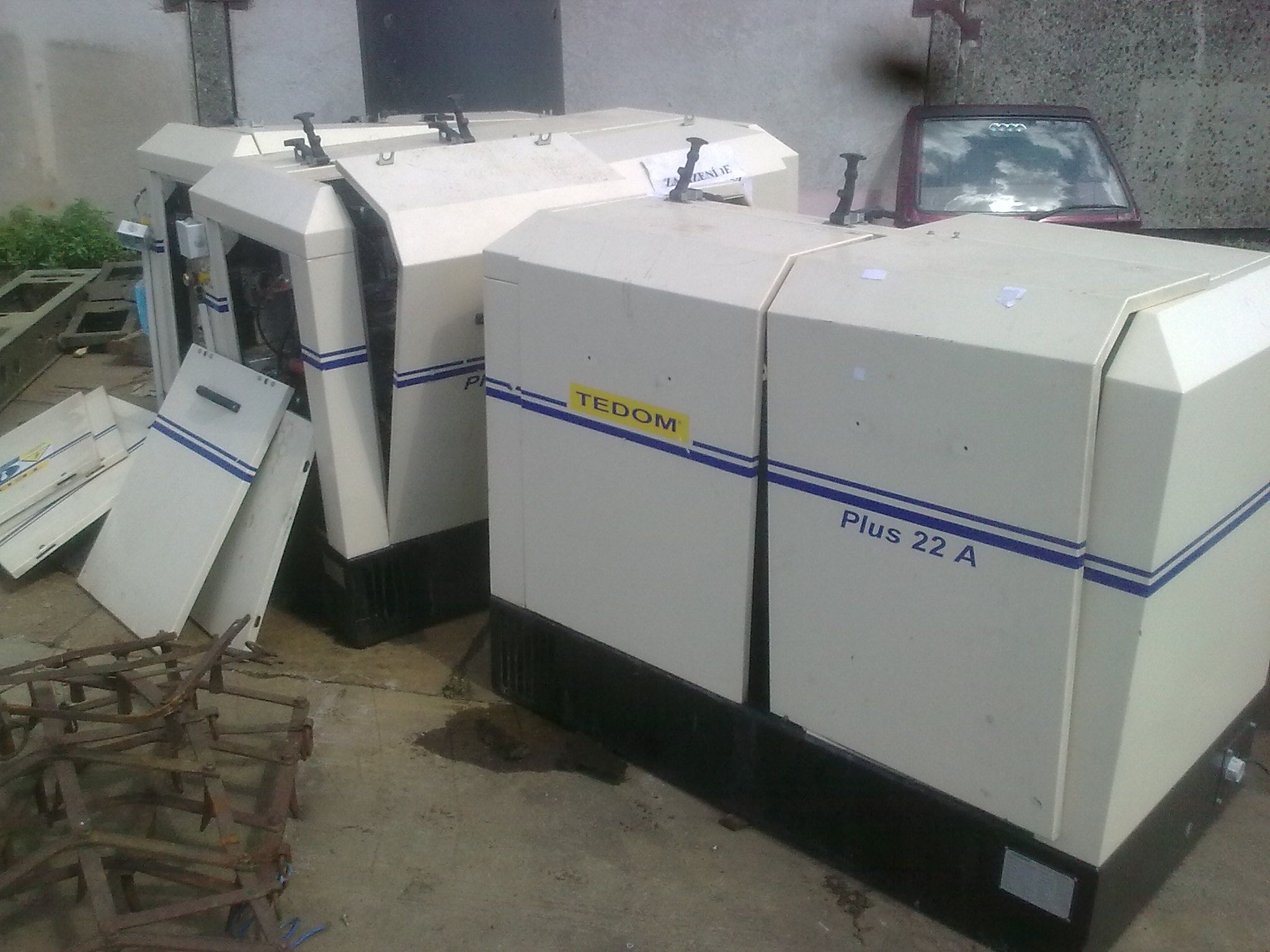 Středokluky: několik dvourychlostních (1400/2800ot.) motorů 550/750W a 0,9/1,1 kW ze šedesátých let. Jeden 4 kW- 1400ot a pár dalších. Kusy tlustých plechů (20, 30, 50 i 100mm), jsou to naporcované tabule odpadu z pálicích automatů.