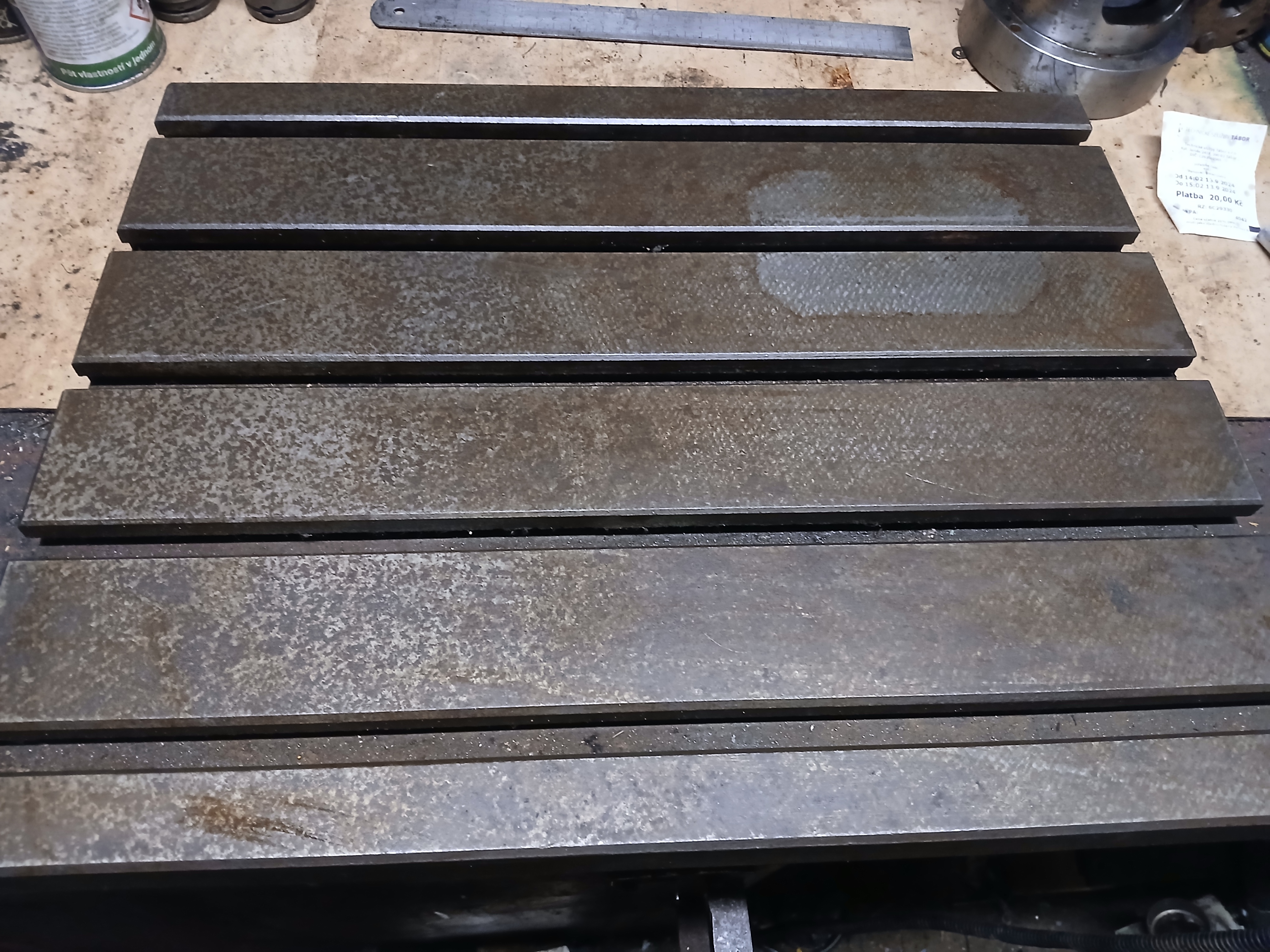 Dík. Jeden půjde na části - ten s tou točnou. Ta točna půjde na brusku. Odříznutá část půjde na přípravek na vrtáky atd. - je plnej - půjde přefrézovat a zaškrabat. Ostatni mají žebra. Z těch ostatních základ na menší jednoúčelový strojky. Další dva mám v autě. Takže celkem jich je pět.