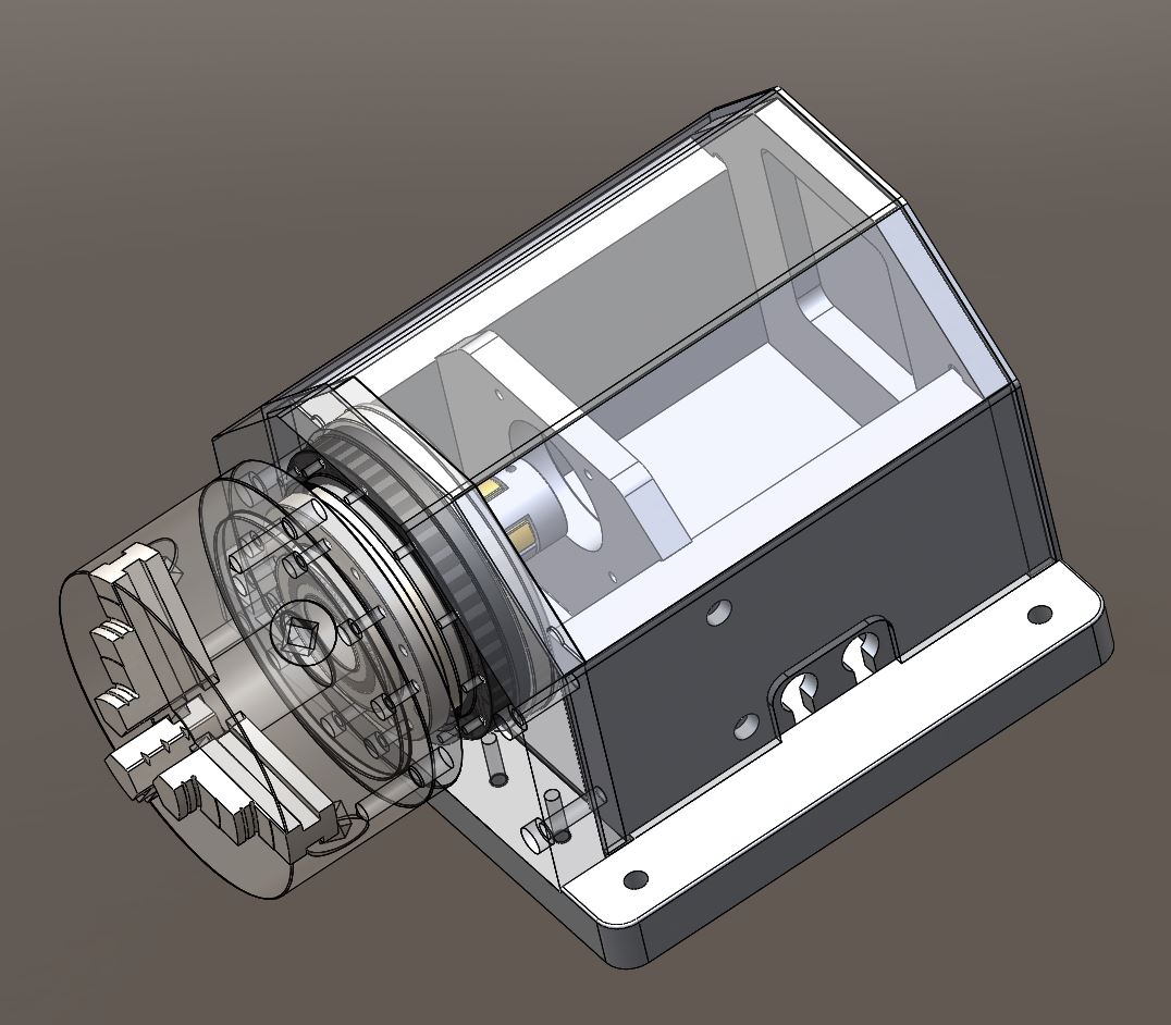 Tak jsem se konečně dostal k tomu vyrobit novou 4tou osu. Před časem se mi povedlo sehnat harmonickou převodovku s křížovým ložiskem s poměrem 1:50. Takže jsem to nějak zkreslil a dneska se povedlo vyfrézovat všechny díly. Sklíčidlo bude stávající 4 čelist 125 TOS a pohon servo ADTECH 200W (taky stávající).