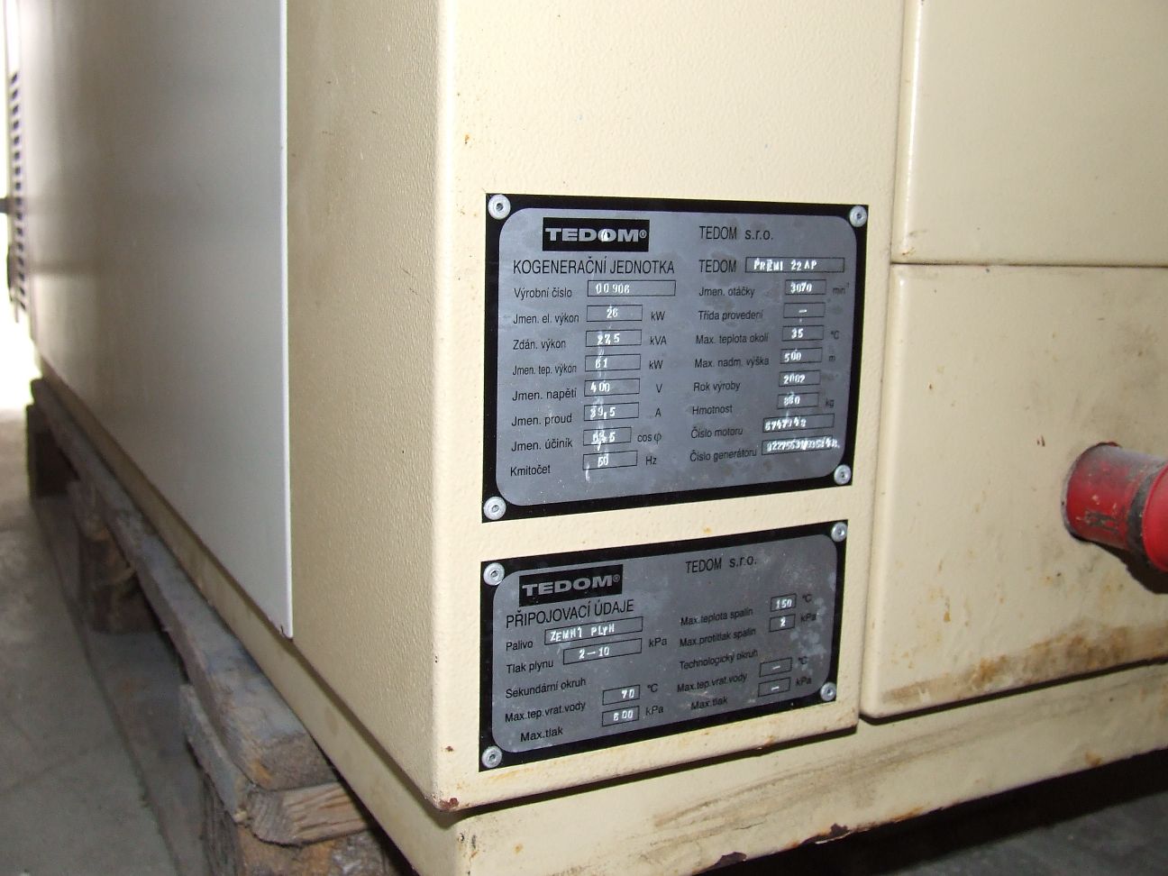 od té doby co vím používají průmyslový diesel Kubota přestavěný na plyn a s jiskřivou svíčkou