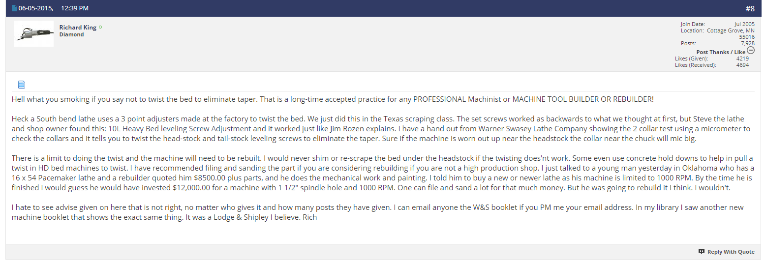 Inak ešte k tomu skrúcaniu lože na odstránenie kužeľa, takýto názor má na to Richard King. Asi každý, kto sa zaujíma o zaškrabávanie a opravy strojov vie, o koho sa jedná