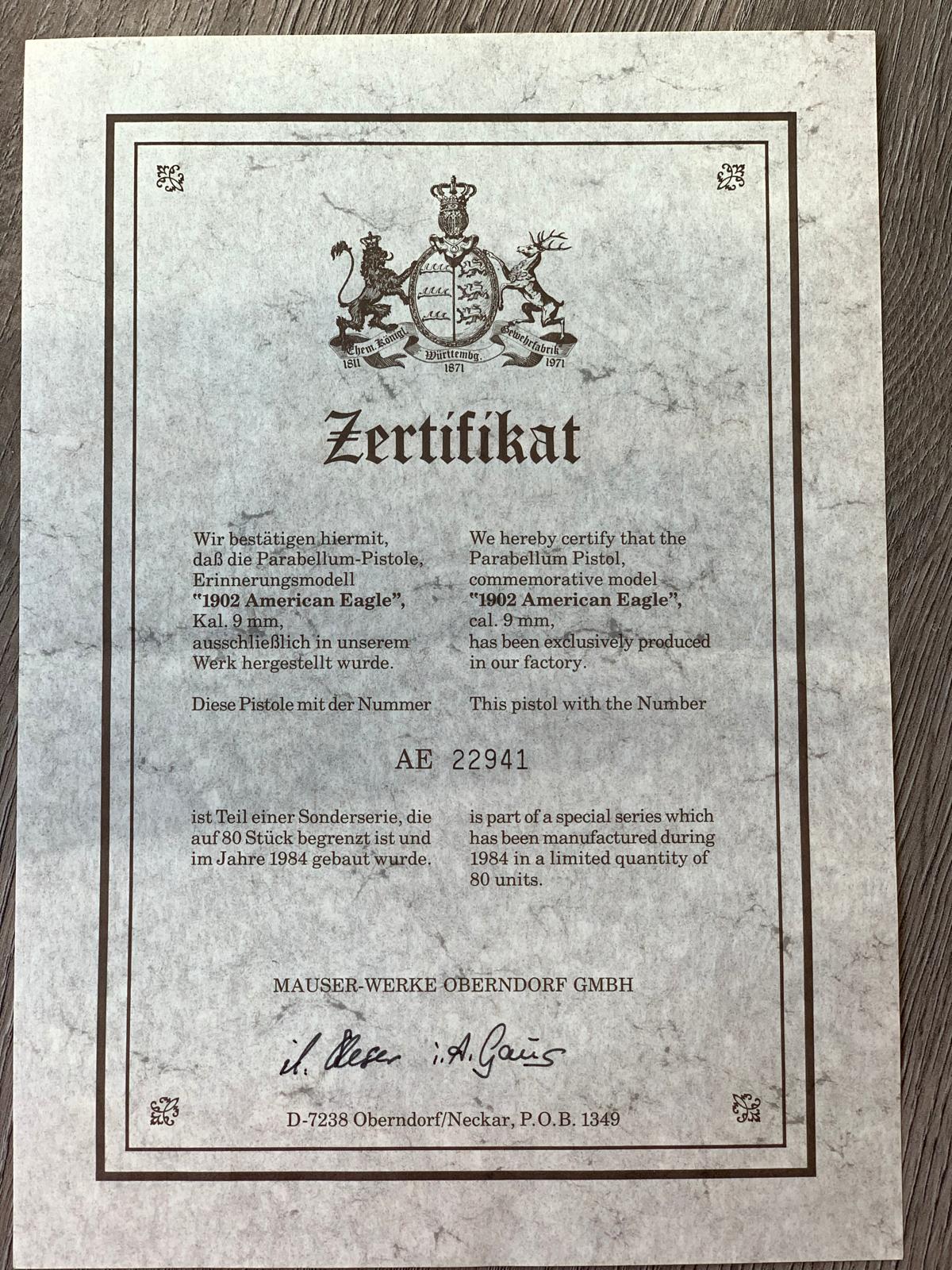 .. něco na střílení ti rád slovím, ale 400 je dost málo. Skalní sběratel miluje nekomprosmisní originalitu, lehce orezlou, hlavně doklad s prokazatelným a ověřitelným náckem. Sběratel investor nepohrdne pěknou limitkou nejčastěji Obendorf, jak píšeš. Samozřejmostí jsou kufry, nástřelné listy, doklady. Bohužel Amrecin Eagle je hnus, moderní kýč a nikdo to moc ani nekupuje. Ceny tomu odpvídají. Mauserovské limitky se zlatým číslováním z mého pohledu nejsou pěkné a jak už jsem psal vidím jich poslední dobou nezdravě moc. Když už limitka, potom alespon viz foto 2. Origo kufr, atd. Žádný plasták s molitanem a Zertifikat kopírka. Rozhodně neříkám, že toto provedeni viz i tvoje foto jsou fake, bohužel zjistit neprave kusy je dost těžké. Zertifikate nic neznamená, šikovný knihtiskař jich namrská dle přání v dobové kvalitě. Fane není žádný právní problém. Privat EU nemá žádnou odpvědnost a neručí absolutně za nic, velké puškařské EU firmy na aukcích jasně uvádějí, že prodávají z oprávnění dědiců či notáře což je dost mazaná věta, velké aukční síně se odpovědnosti rovněž smluvně výslovně zříkají. Sběratel nezná, sběratel prostě zakuká.