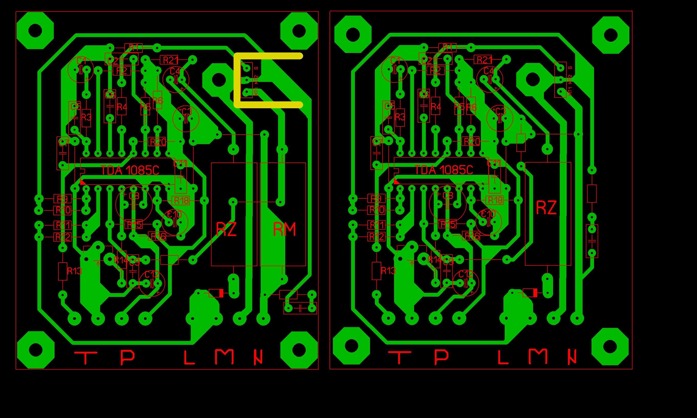 Ještě mě napadlo udělat verzi s výkonákama na motor a bez nich. Bohužel Ve verzi s výkonákama na motor by museli bejt daný na stojato. Což by asi nebyl problém ale spíše propoj pod nima. Ale toby taky zas tak nevadilo výkonáky bych dal určitě kousek nad plošnák at můžou dejchat. Jinak velikost plošnáku je 65x77 Takže regulátor by se mohl vejít do elektroinstalační krabičky co je na omítku.