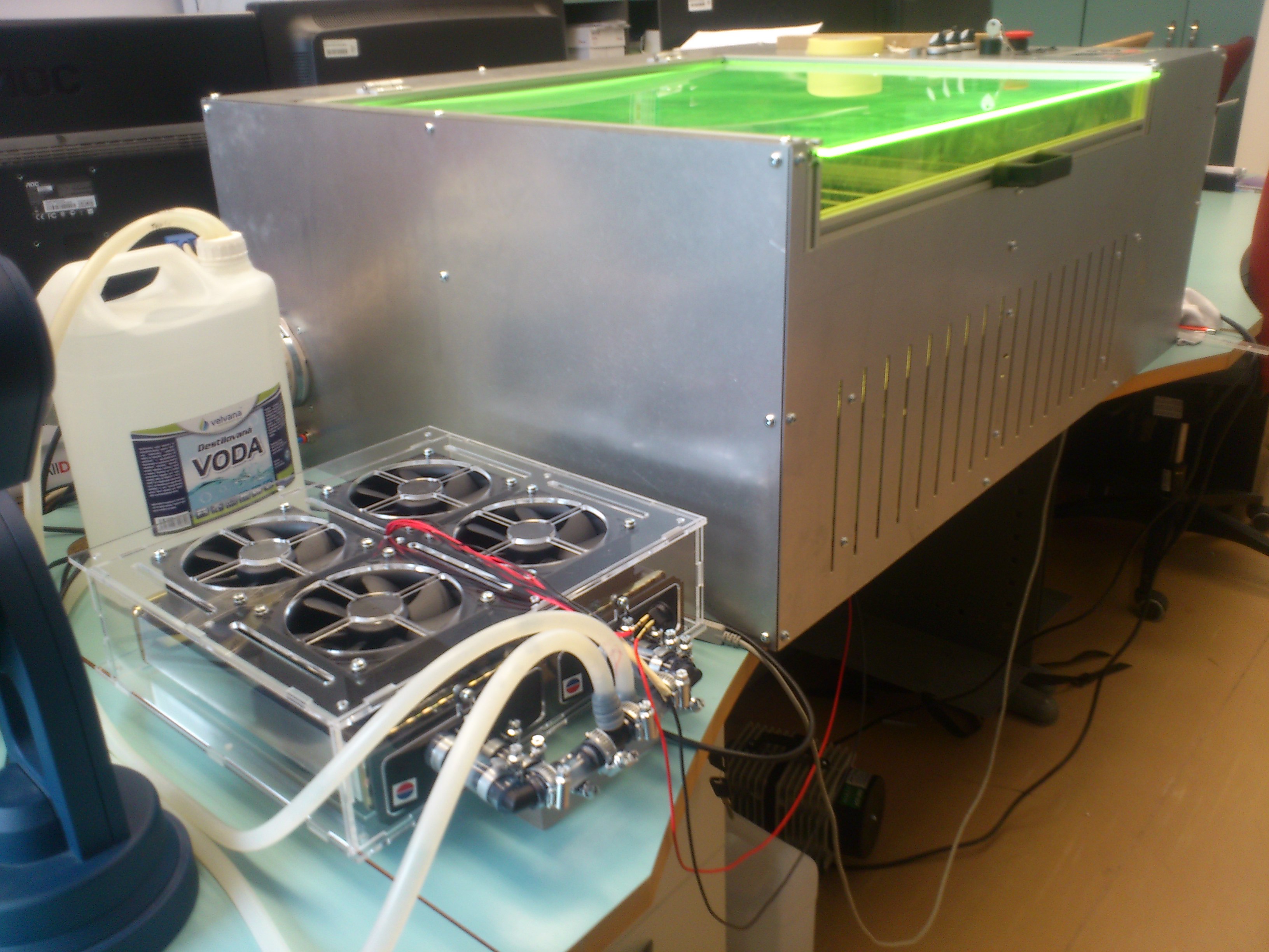 Taky mám v plánu tam hodit nějaký ledky, ale plán je takový, že tam k tomu udělám ještě vlastní expanzku, čerpadlo, zdroj , nějakou malou elektroniku a bude to nejenom teplotu zobrazovat, ale ještě se bude měnit barva podsvětlení ledek z modré do červené, podle teploty vody v okruhu :) Chujovinky. Jinak. Mě to taky dlouho leželo jen tak vedle stroje, a ventilatory cestovaly po výměníkách jak mravenečci. Teď byla chvilka času, tak jsem to umravnil :)