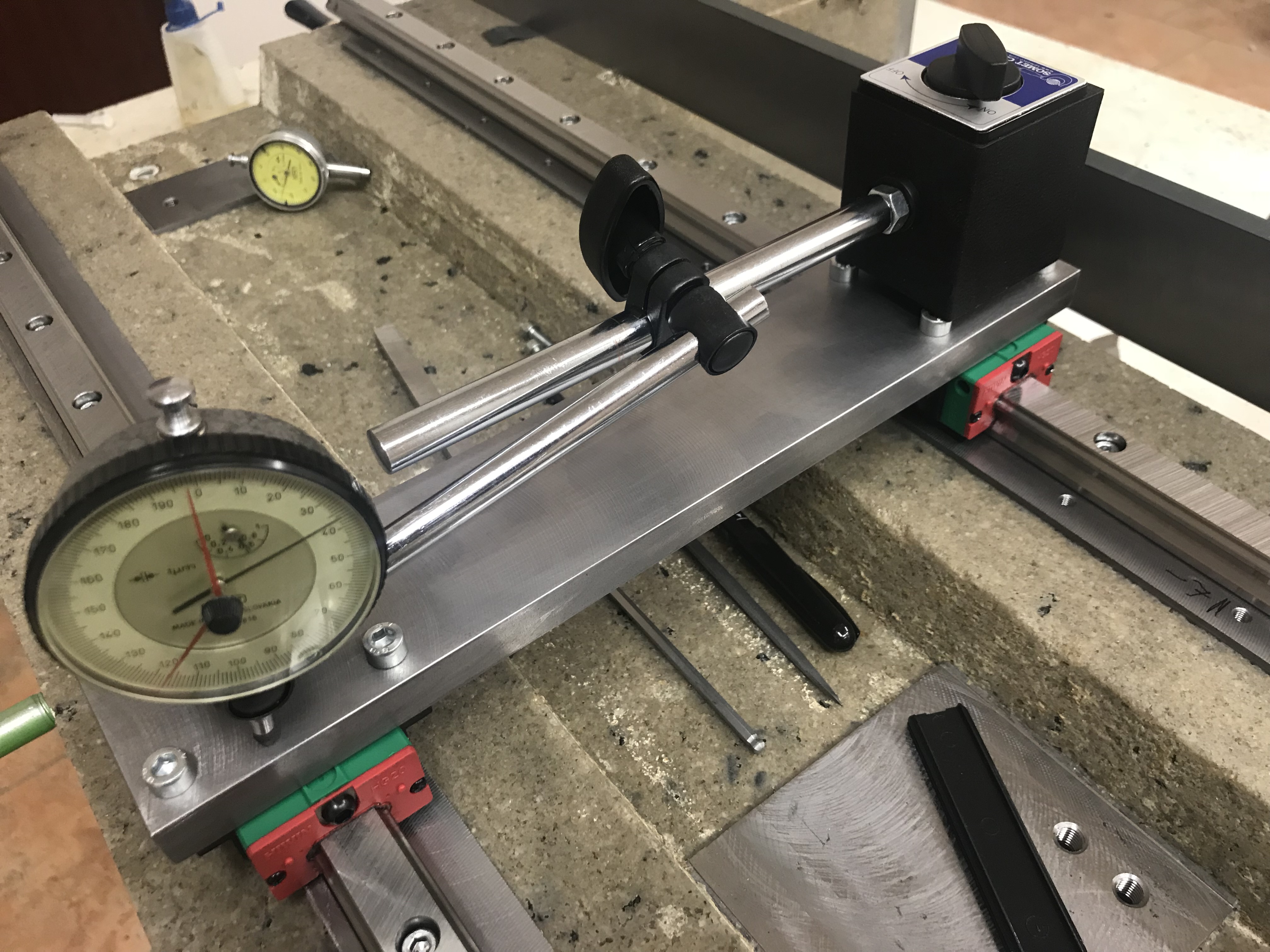 dnes ještě zkusím otočit jeden ten lineár o 180 stupňů, protože v jednom místě mám větší vyýchylku měřidla, ale pravítko v tom místě špiní dokonale i s tenkou vrstvou barvy.