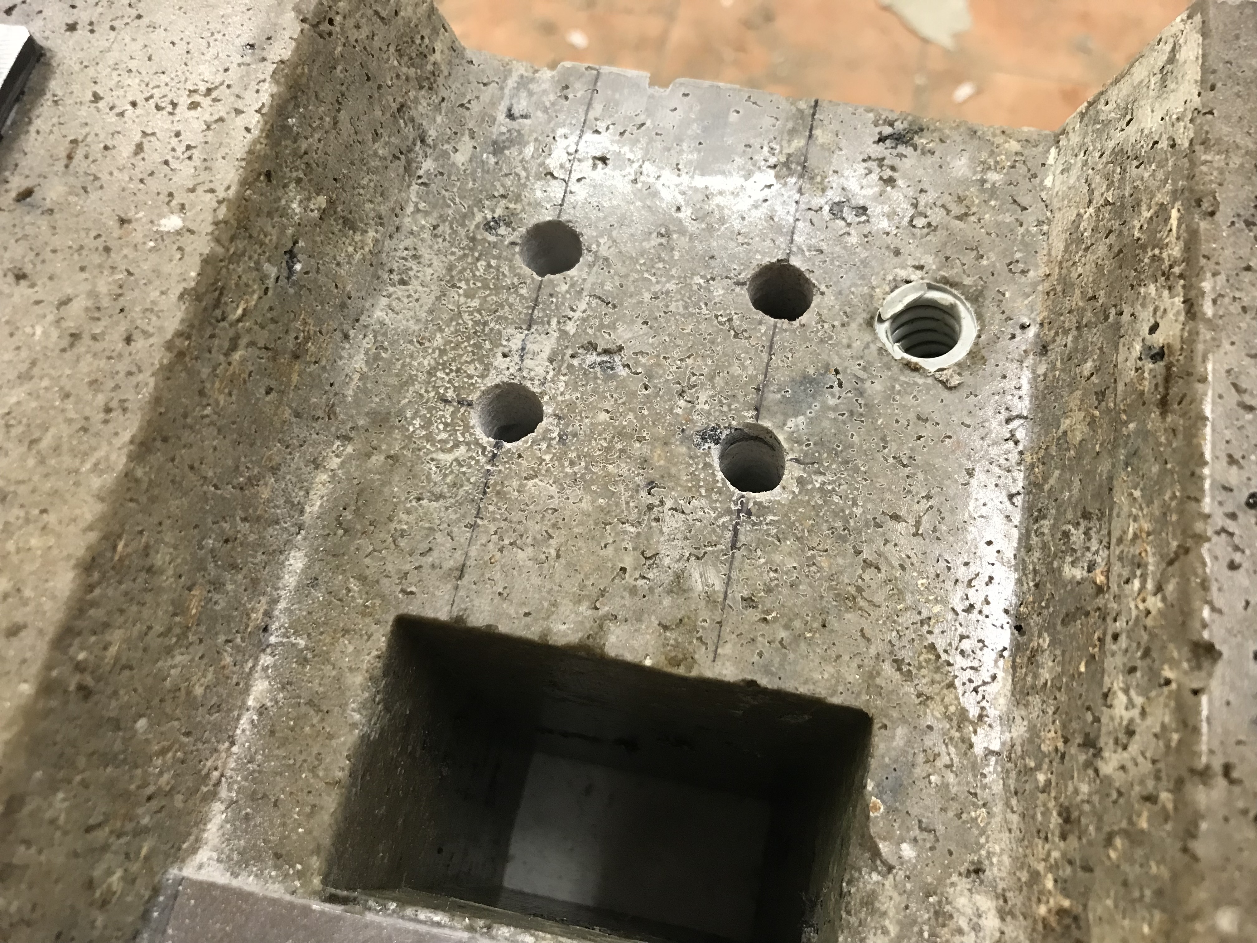 Vyvrtal jsem desítky díry na připevnění koncových a havarijních spínačů. Vrtal jsem to příklepovou vrtačkou