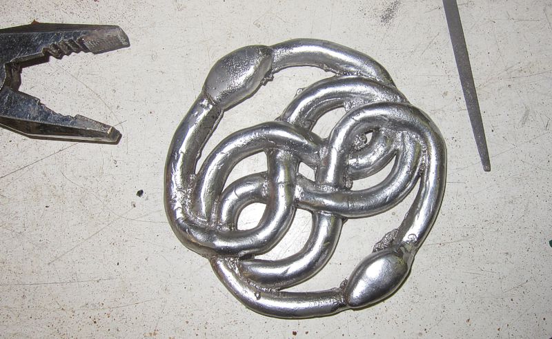 To chtěla dcera na nějakou hru. Tak si ho umotala z fima a já jí to pak podle toho odlil. Tahle technologie k tomu moc vhodná není, špatně se tam honí dělící rovina je tam moc záhybů… Lepší by bylo to nejdříve zalít lukaprenem, pak odlít z vosku a ten po zafomátování roztavit, ale to už by bylo moc složité. Tohle byl spíše pokus zda to půjde a vcelku to vyšlo. Zbytek si musí poladit pilníkem. Jako budoucí zlatnici se jí taková praxe bude hodit :D