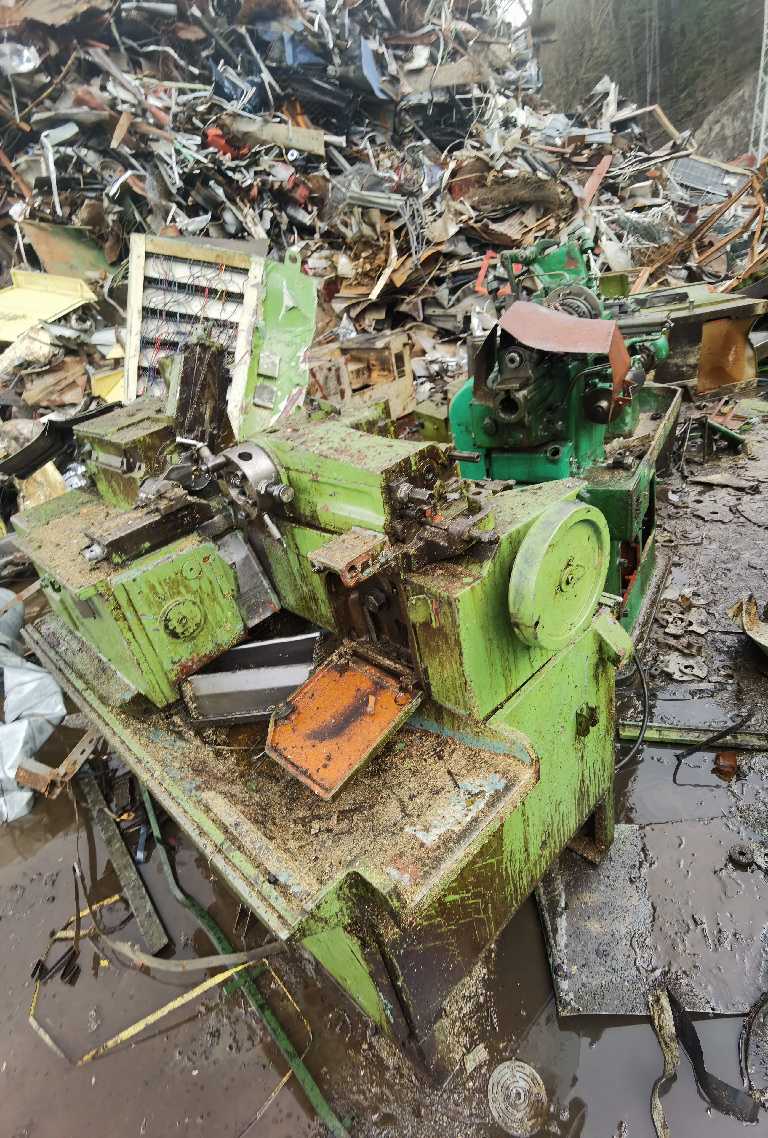 Pro železniční sběratele, přestavník výhybky se závažím a neosvětlovaným výměnovým návěstidlem (šipka), druhý leží na opačném konci dvora.