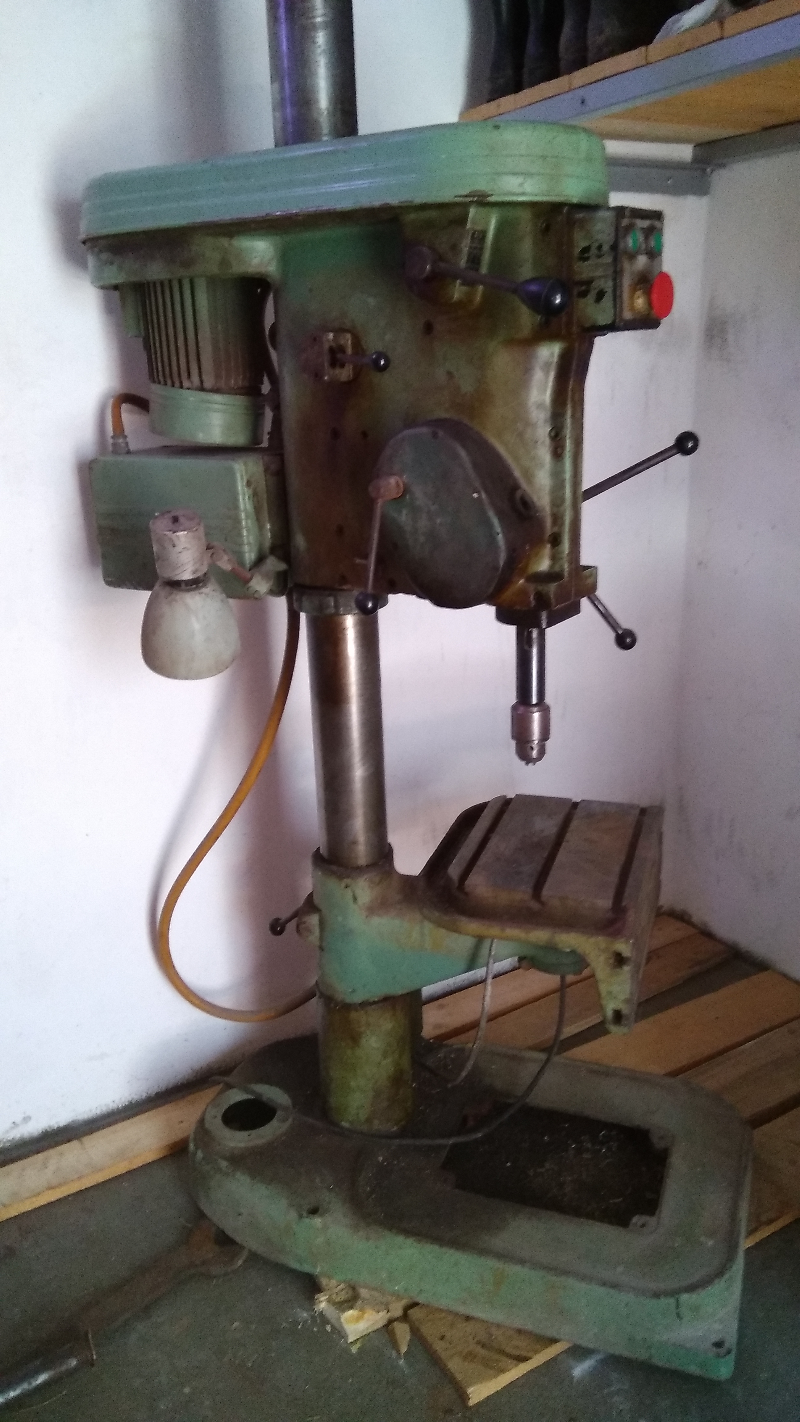 Tak po roce a půl mám konečně vrtačku v nové dílně :D Už se těším až bude chvilka na vyčištění. Vzal jsem kartáč a čistič motoru... Najednou jsem po letech objevil, že je na šroubu stupnice :lol: