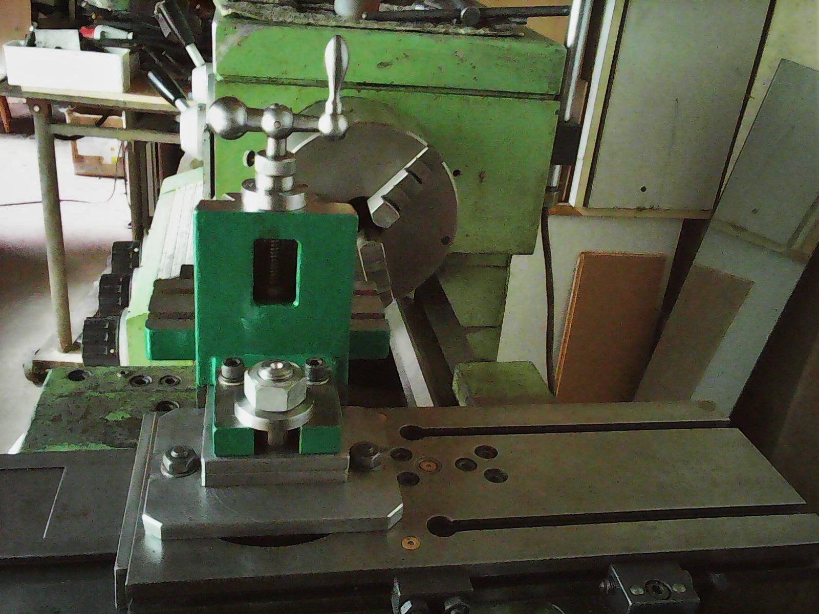 Tak jsem dneska chvilku frézoval - základní deska pro přichycení frézovacího suportu (namísto nožového suportu) A tady je už fréz.suport přišroubovaný místo nožového suportu. Ještě tam dojde středový šroub M 20 mm jednak na dotažení suportu a taky aby se dalo celým zařízením otáčet a frézovat podle nastavených stupňů (úhlů).