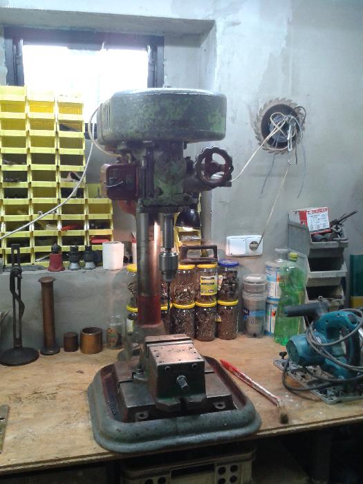 Pánové ,jak to bývá ,vrtačka je bez štítků. Motor je AEG ,ještě se mi nepodařilo rozluštit rok. Jediné logo co jsem našel je na stupnici zdvihu .