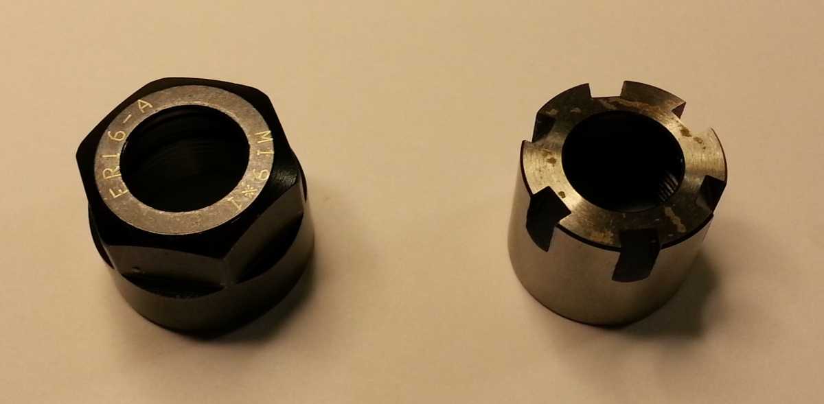 Mám vřeteno Atas s ER16, má matici ER16-M. Objednal jsem si v Číně novou matici, a přišlo mi to co je na obrázku vlevo.