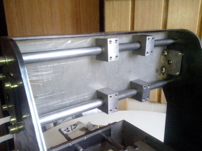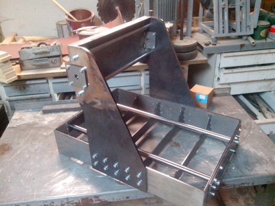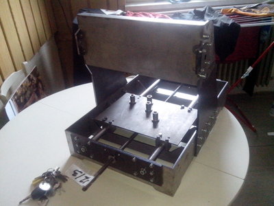 Tak dneska sem si hral ze svářečkou a výsledek je si myslim hodně kladnej. Vše se povedlo. Podstavec byl hezky stažen pote pobodován a přebroušen. Na uhlopříčkách je rozdíl asi 0,2mm což si myslím že je zanedbatelné( vzniklej rozdíl dohoním na čelním plechu kde jsou přišroubované vodící kulatiny). Zbytek vyšel hezky. Když sem byl v tom tak sem vyleštil vodící tyče hlazenky (-: a jsou krásné hladké. Sváry byl přebroušeny. Tedka zbejvá stočit trapézák a vytočit matky a ještě obrobit domečky a už se to bude hejbat. Přidávám pár fotek.