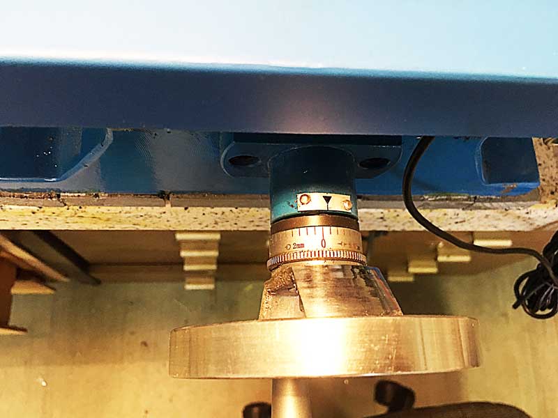 Samotná měřící jednotka je připevněná přes bronzovou planžetu abych kompenzoval případné nerovnosti pravítka. Jednotka stojí a pohybuje se pravítko.