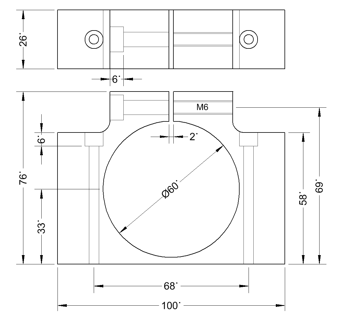 Ještě přemýšlím, jak moc troufalé je jít s celkovou délkou upnutí ze souvislých cca 69mm u originálního pouzdra na cca 2x25mm (z hlediska potenciání deformace těla vřetena a potřebné pevnosti upnutí). Mohl bych je asi nechat udělat širší případně bych mohl mít tři (střední by se upínal M5 imbusy), ale obojímu bych se rád vyhnul.. tělo vřetena působí dost bytelně, takže si myslím, že ho to nerozhodí a 2x25mm by taky mělo držet fest, ale to jsou z mojí strany jen dojmy.