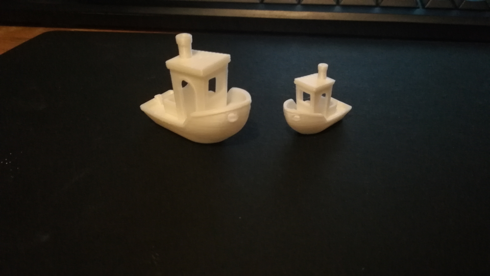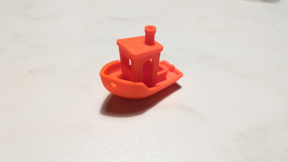 První výtisky dopadly velice dobře. Bílé jsou ze vzorku PLA, který byl k tiskárně a oranžová loď je z PETG. Kromě teploty u PETG jsem nic neladil a nechal vše na sliceru Cura.