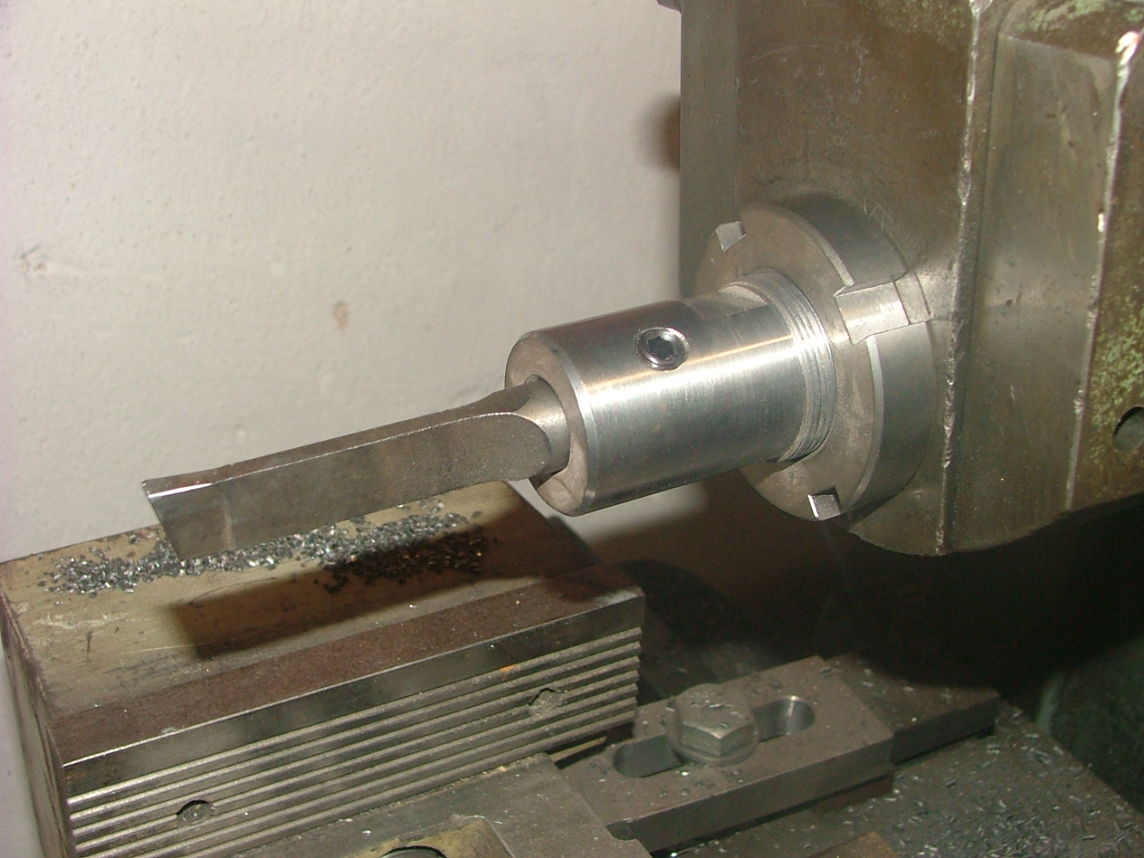 Na ustavení středu mám udělalný takový forichtung ze šestnáctky kulatiny co upnu do sklíčidla a na té kulatině je vyřezaná kotoučovou pilkou přesná drážka přesně v ose podle nejčastějc používaných drážek z jedné strany zfrézované aby se drážka dala nastavit vodorovně s nožem ,obrážecí hlava s ustaveným nožem sjede dolů a já už do nože najedu s tou drážkou přesně kličkama
