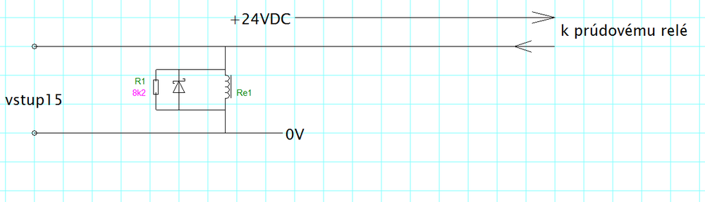 na vstup 15 mám pripojený signál OKTM - keď plazmový zdroj začne rezať, tak prúdové relé zopne kontakty. Druhý kontakt prúdového relé je pripojený na +24VDC.