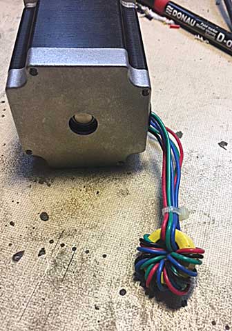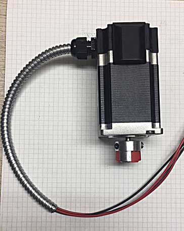 Takhle to vypadá celé. ABS tisk koncovky NEMA23, ocelová uzemněná chránička a průchodka.