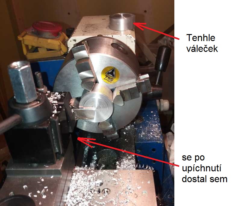Nejhorší je, že druhý vřetenik je v krabici na podlaze pod pěti 30kg krabicemi. A ještě se tam pořádně nedá manipulovat. Štěstí v neštěstí je to, že jsem ten přípravek už byl jen pro snadnější zarovnání podložek. Takhle je zabrousim v ruce.