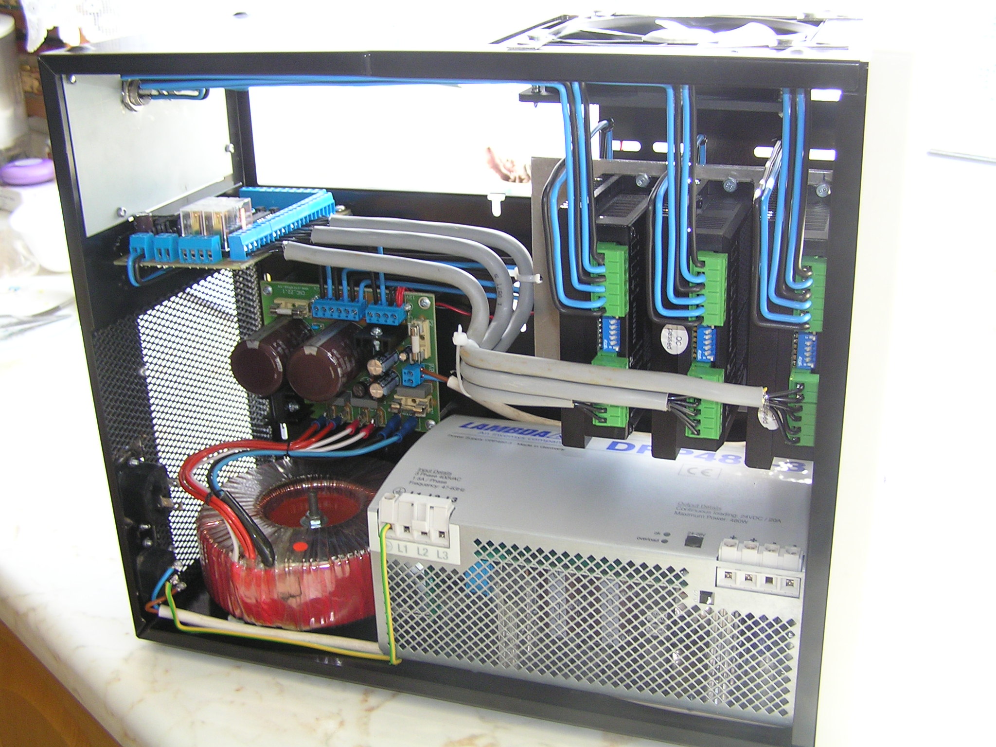 Předem všem díky za kladné reakce, je to pro mě (obzvlášť v současné době) velmi povzbuzující. Mašina už jezdila - ale na provizorních drátech. Až dorazí kabely tak sem dám nějaký video. Při testech to spolehlivě jezdilo 8m/min. Dá se jít i na 9, ale to už je nahraně a asi to ani nemá cenu. Jak už jsem psal vřeteno teprve řešim. Nějak se mi nechce do kressu atp. Asi zvolim opět svojí vlastní cestu a o něco se pokusim (vlastně už se pokoušim). "Zachránil" jsem před likvidací vzduchovou brusku NAREX, takže to asi použiju. Je na kleštiny 1495 - těch mám spoustu.Pohon bude modelářskej inrunner 1800 ot/v. Chlazení motoru vodní - to už mam hotový a funkční. Zdroj spínaný 24v/25A. AC regulátor s funkcí pro udržení konstatních otáček. Zatím jsem to zkoušel sestavené jan tak halabala narychlo a docela dobrý. Letecká překližka 4mm frézkou 1,5 mm na jeden průchod. Při 25 tis ot. byl proud cca 3A - takže příkon nějakých 70W. Až to dokončim tak všechno určitě tady zveřejnim. Možný je i to, že to všechno vyhodim a dám tam kresse