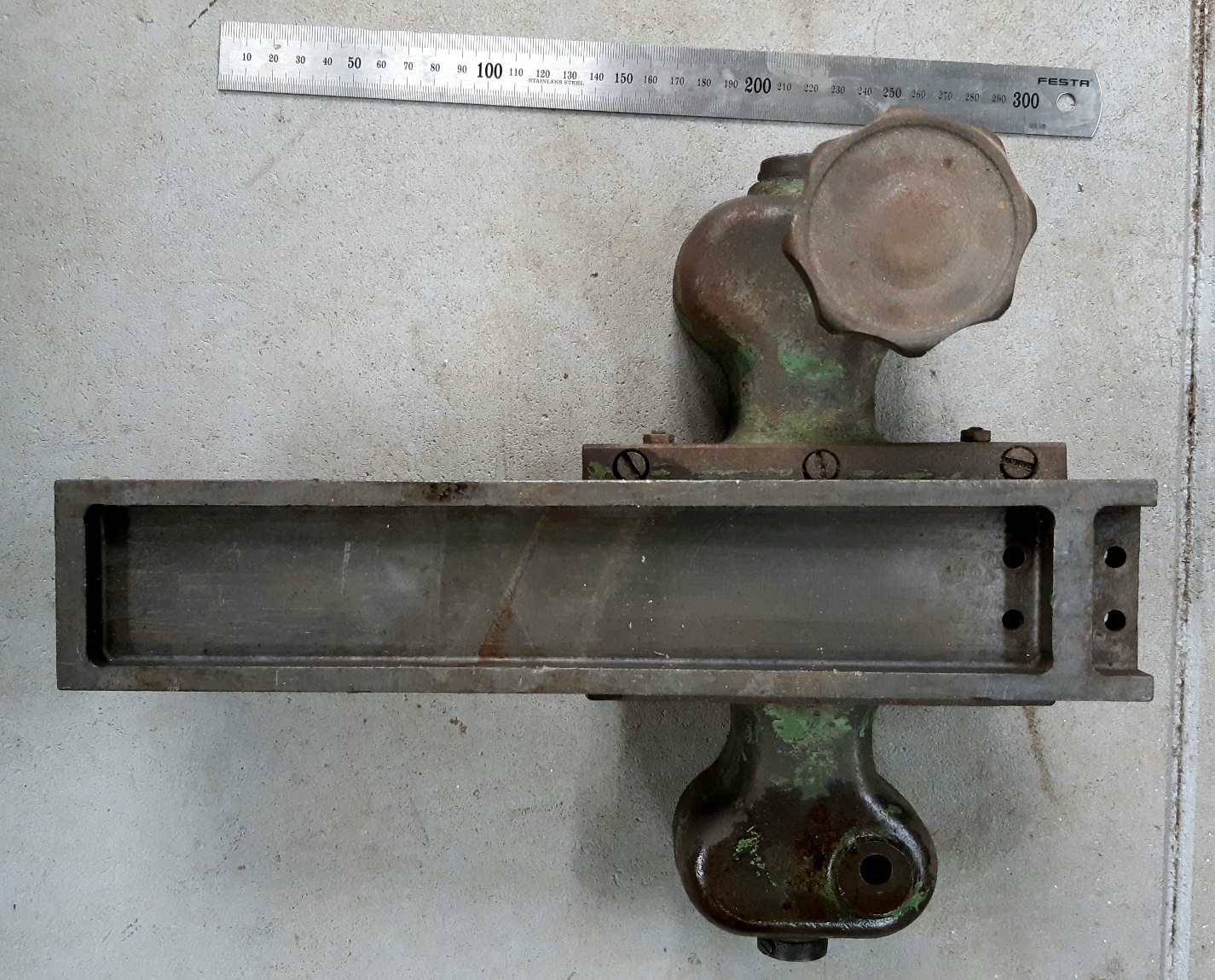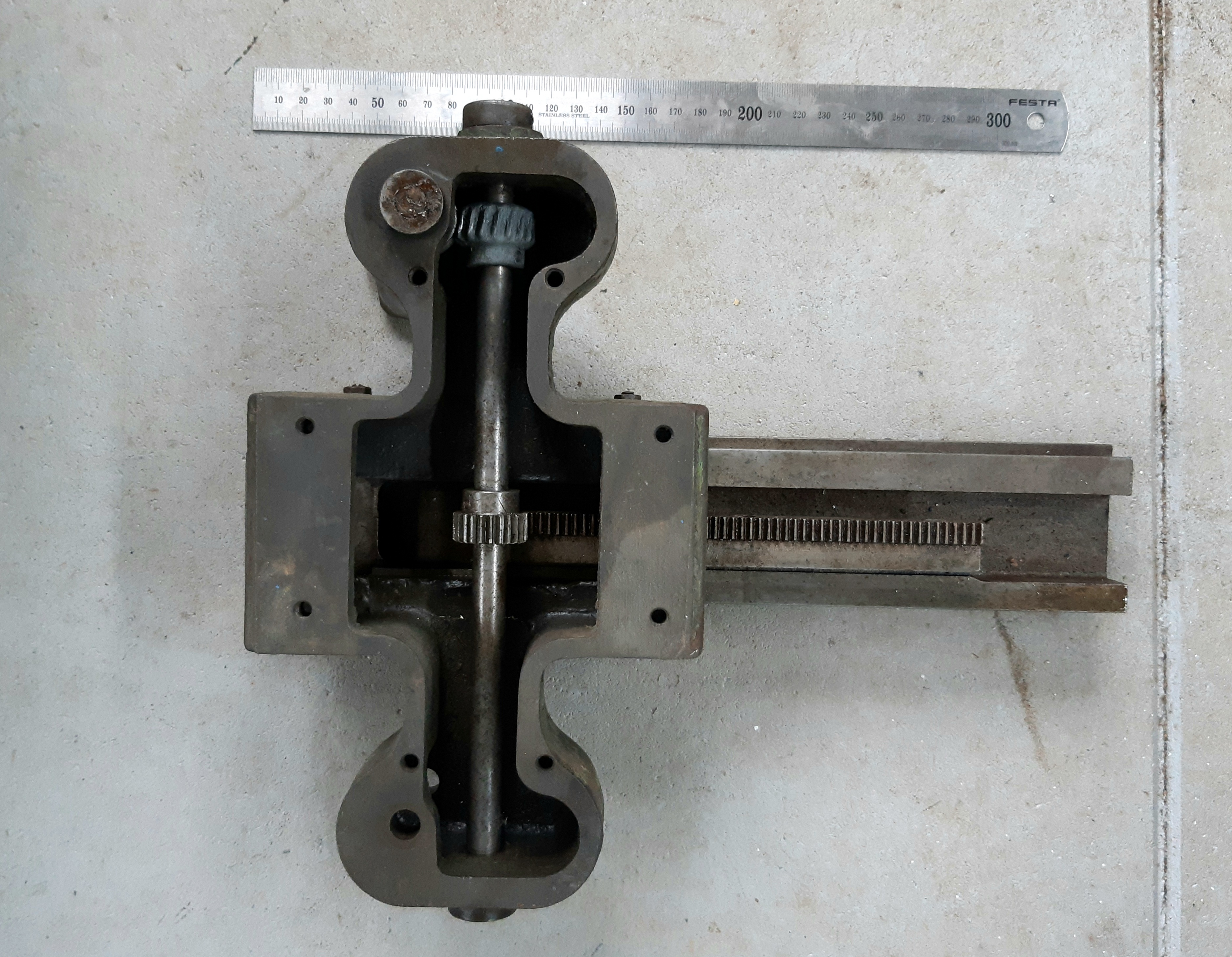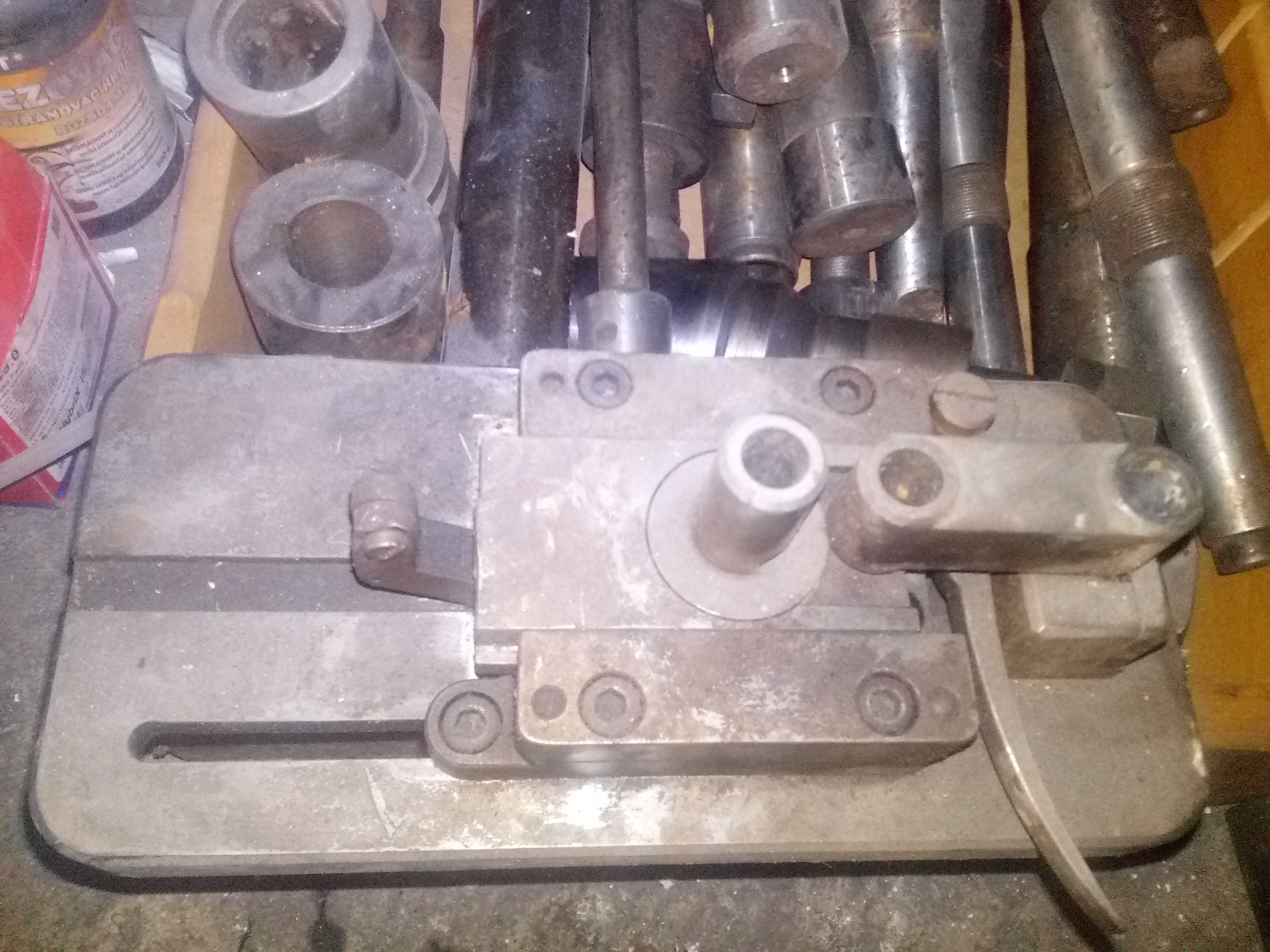 Připomíná mi to nějaký štelování z dřevoobráběcího stroje (pila, protah, frézka), mám něco podobnýho na svý 5-ti kombinaci z poválečnýho Německa. Možná bych to i za něco vyměnil a udělal si z toho rychloposuvný pravítko na pilu....
