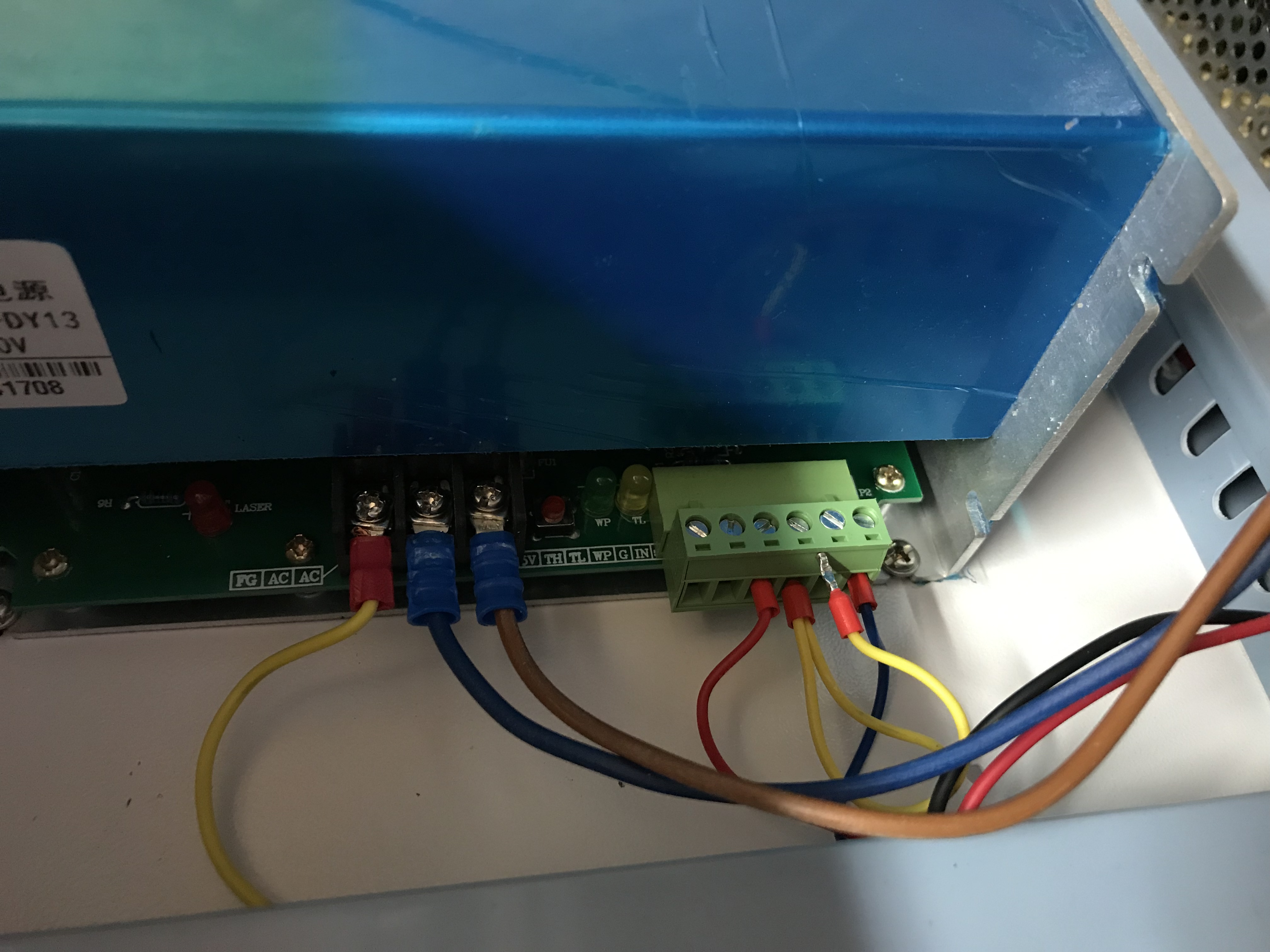Nakonec to přece můžeš snadno změřit - pusť laser naplno a změř napětí na svorkách 230V.