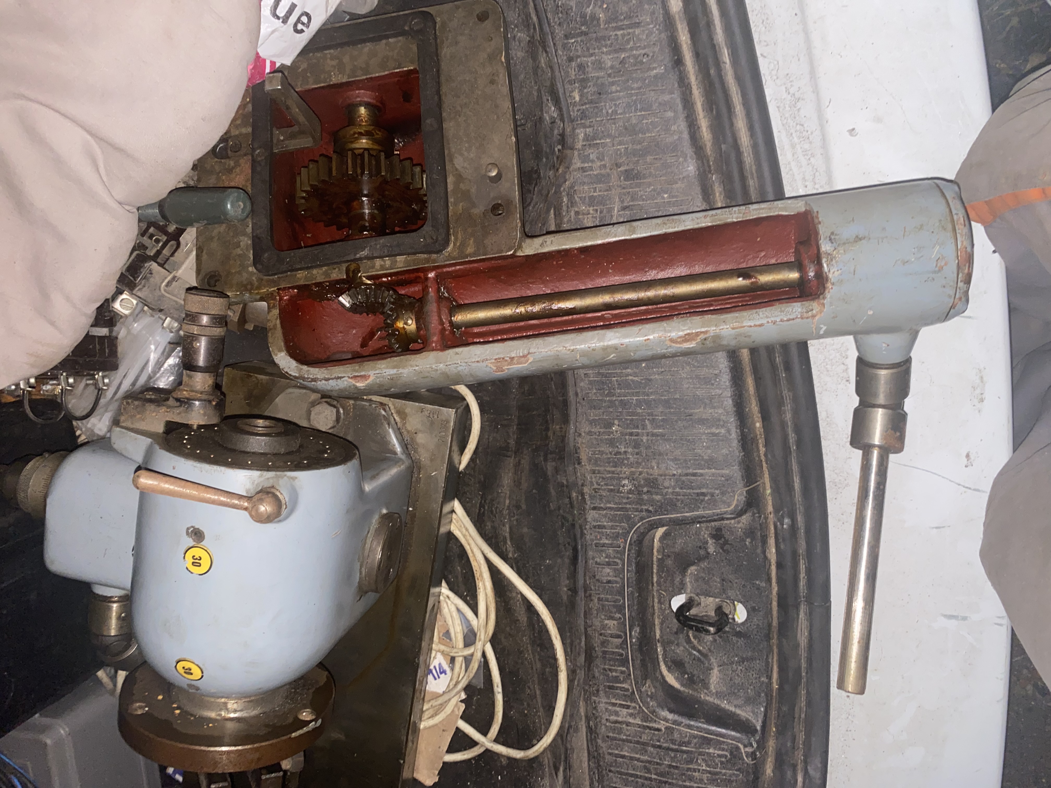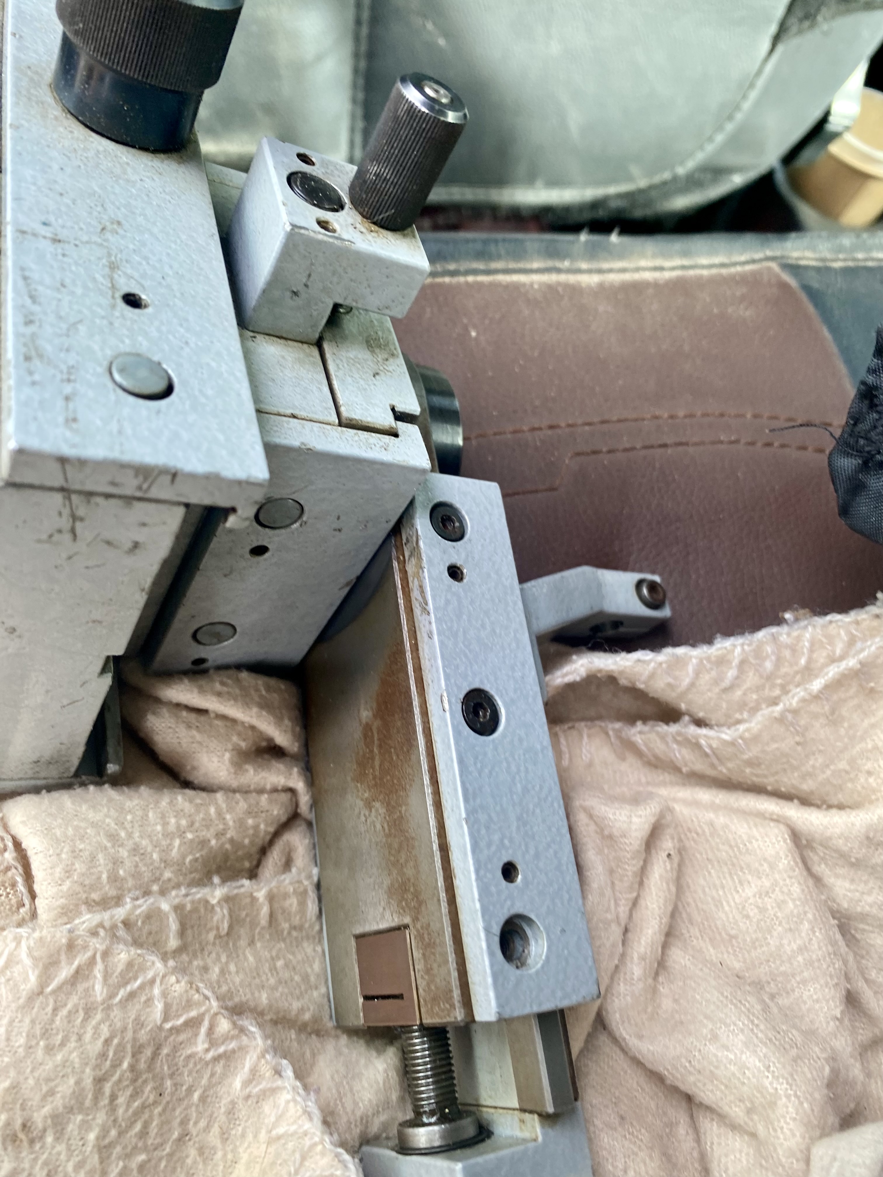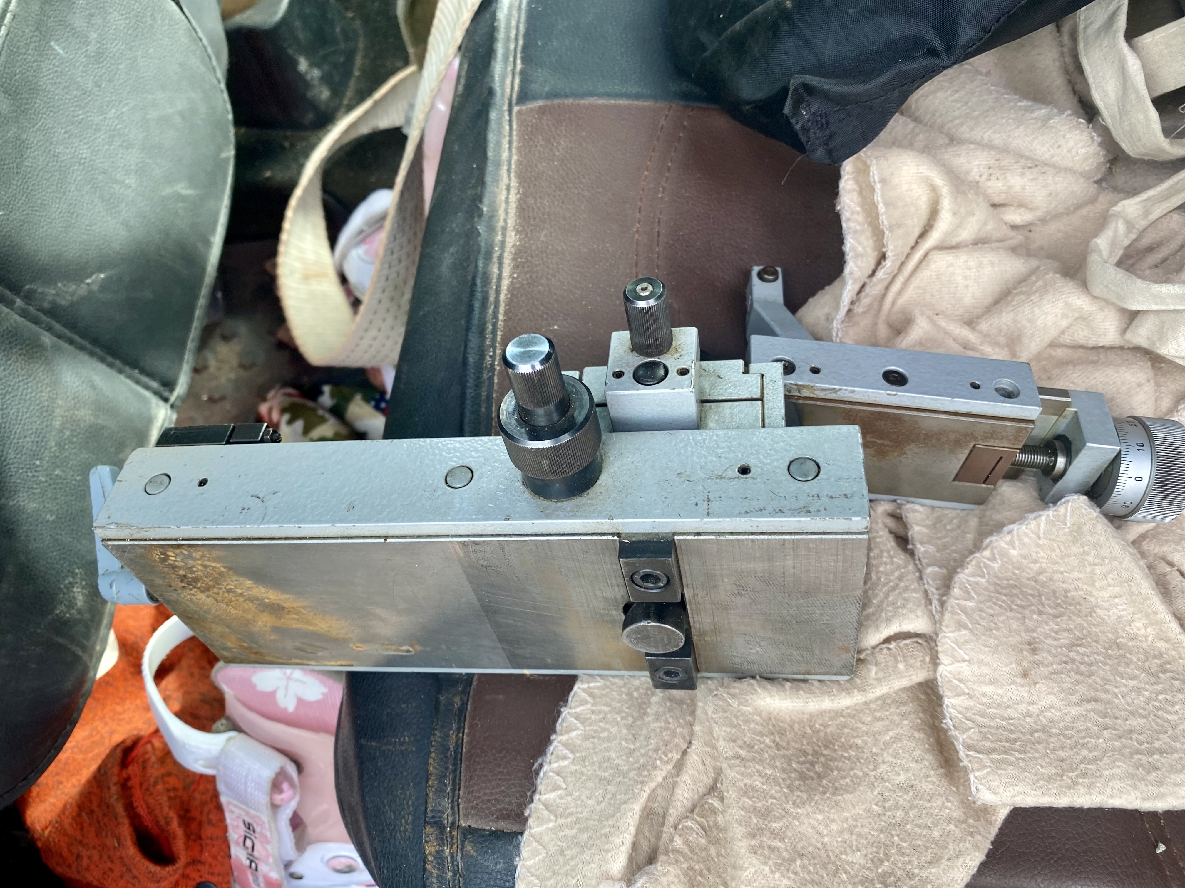 Vie niekto povedať z čoho to je_? Netreba po tom pátrať, teké dôležité to pre mňa nie je, len keď to niekto spozná. špekulujem, že to použijem na môj revolver. Len je to nejako všeliako obrátene všetko. nijak mi to nepasuje , ako keby to bolo pre ľavákov.Asi to je na nejakú brúsku. posun na 1 otáčku kľuky je 3 mm /hore aj dole/ dolný posuv číslovaný 0-150 horné vedenie 70-0-70.