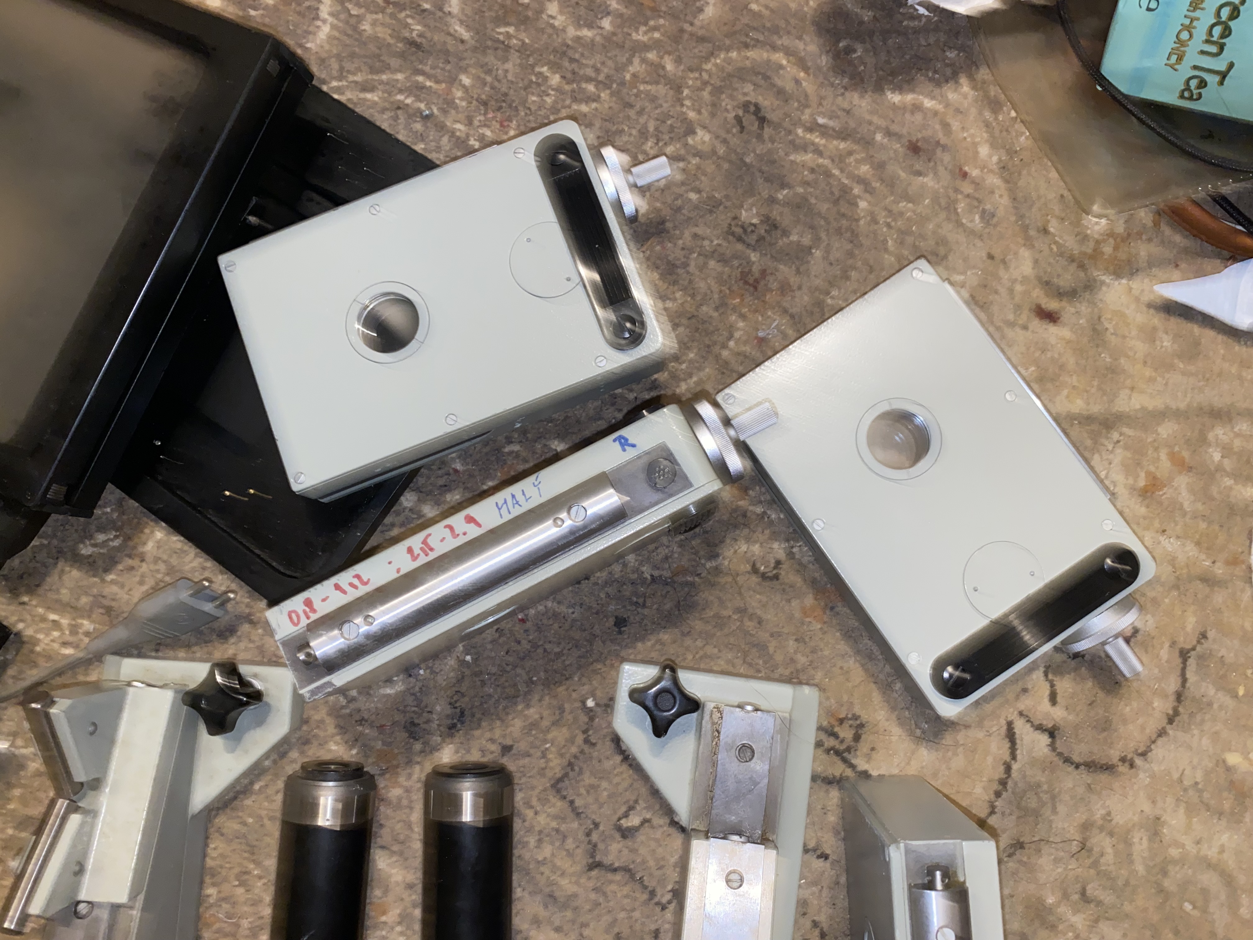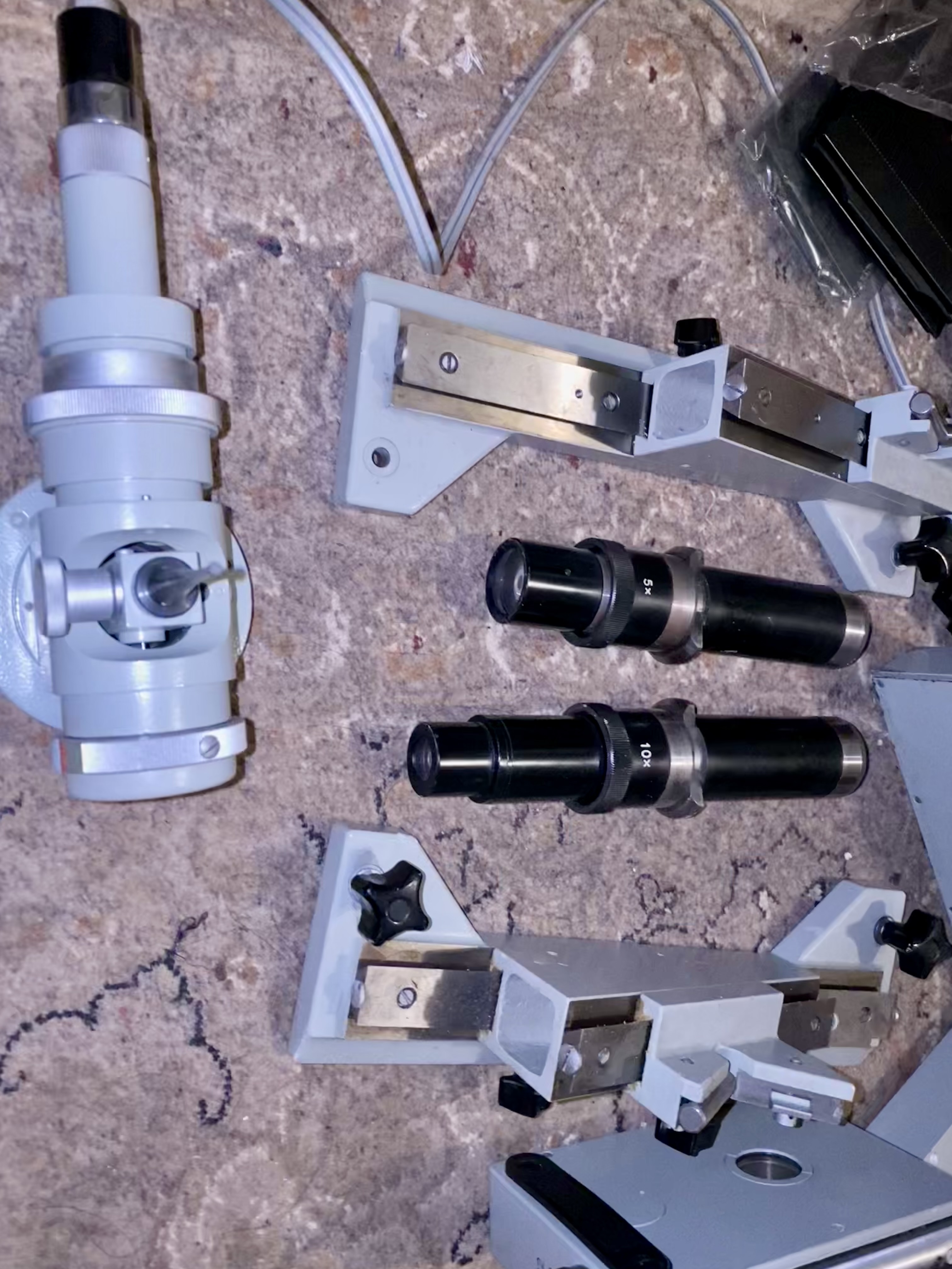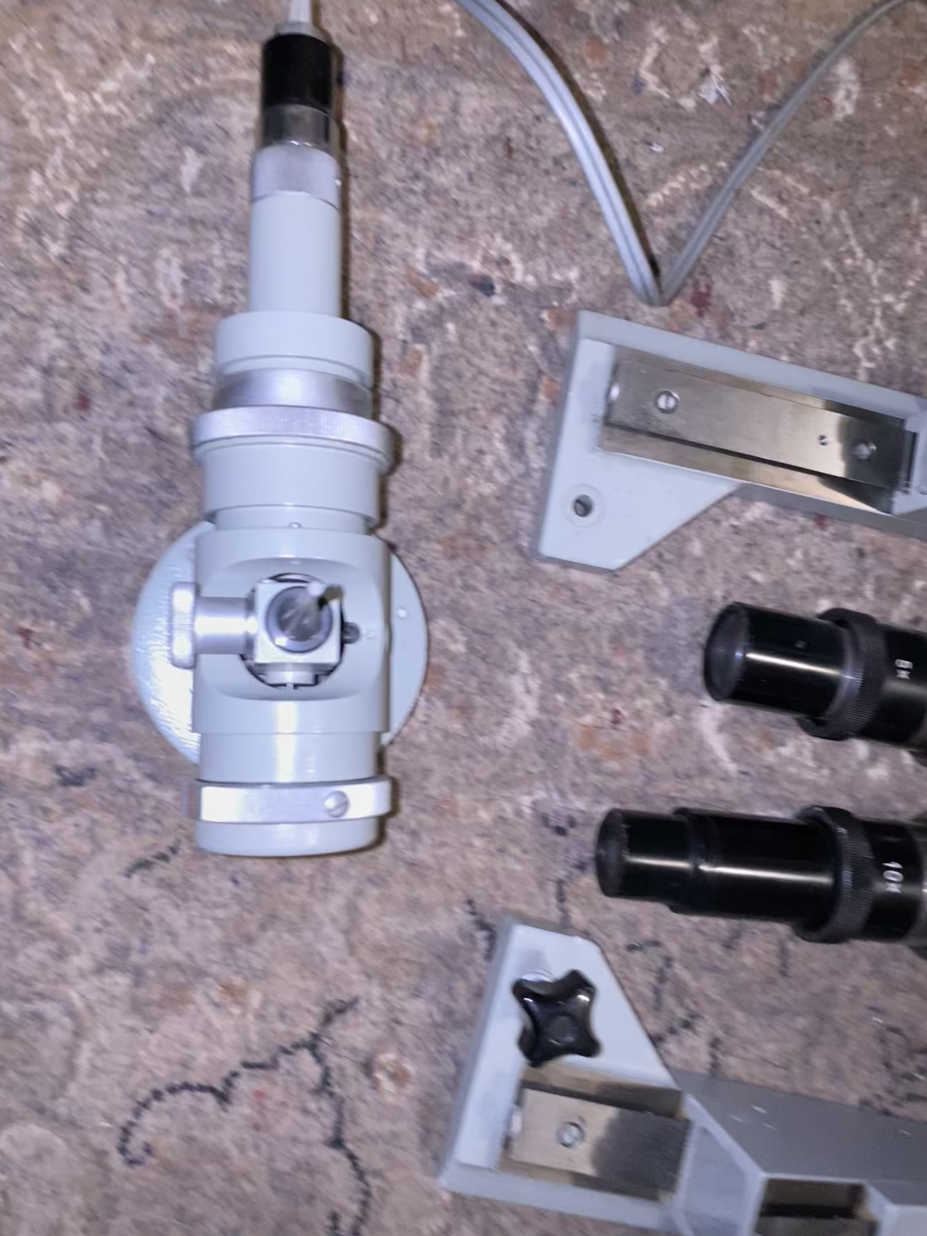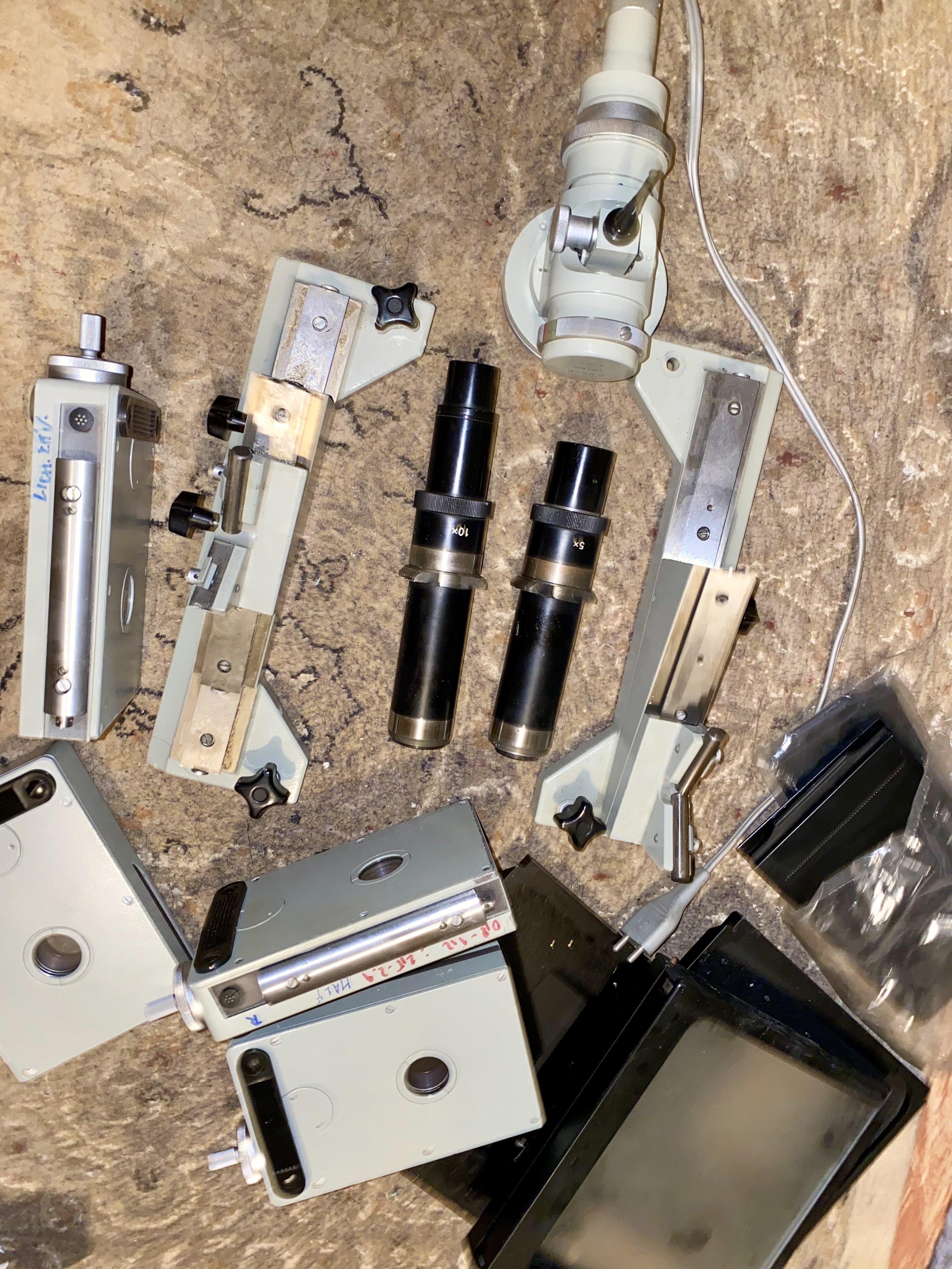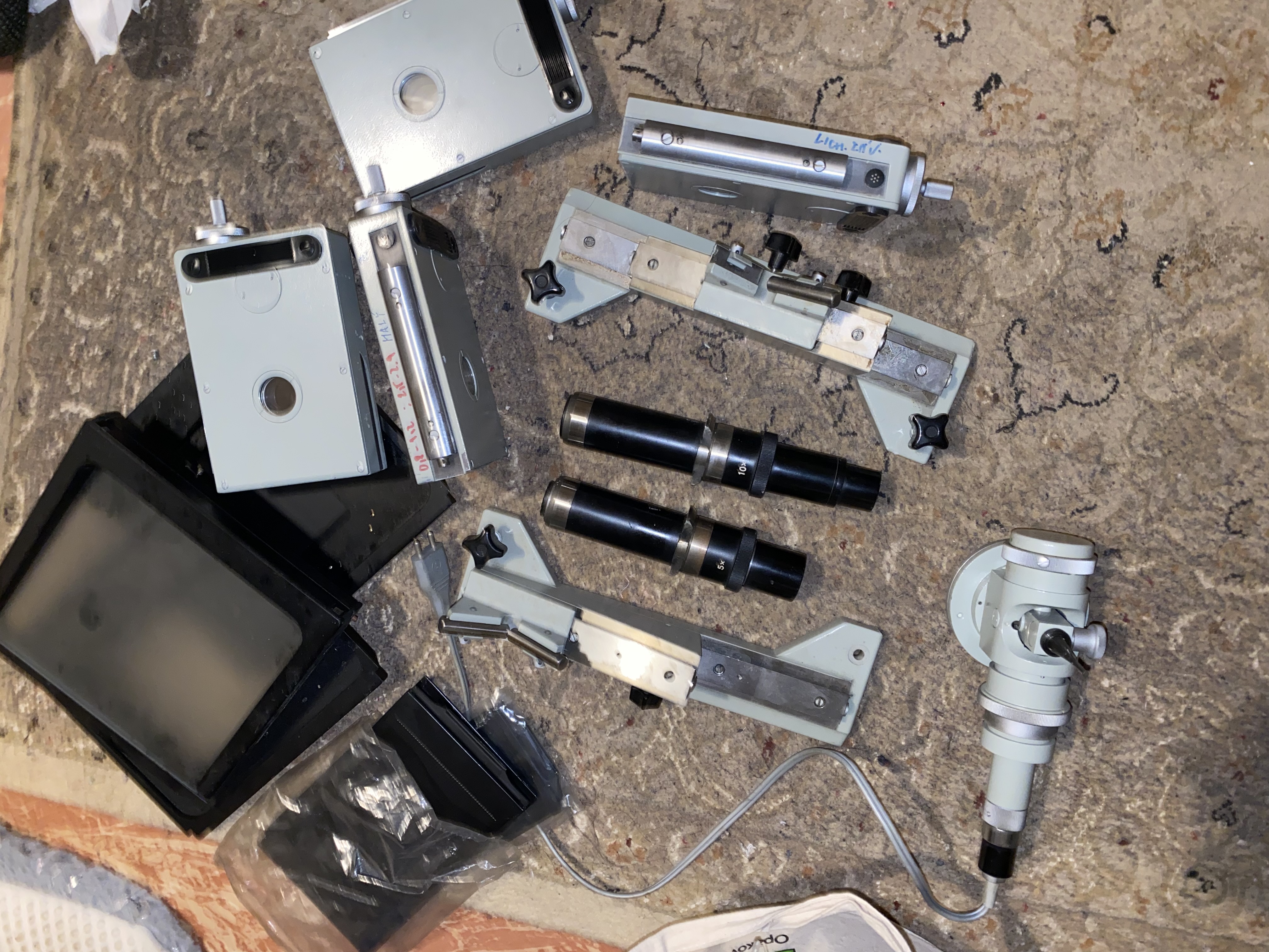 Koupil jsem nějaký starší speciální elektro ponk a po otevření kovových šuplíků jsem našel nějakou sondu, různá stínítka, nějaké výměnné kazety , nějaká optika atd . Bohužel nikde není výrobce . Nevíte někdo kluci k čemu to bylo ? děkuji