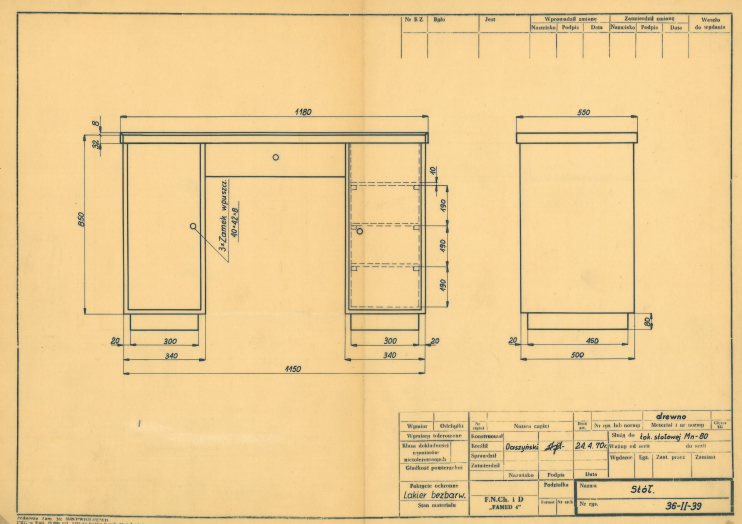Ano,správně. Samozřejmě se nebavím o tom,jak by se choval soustruh na litinovém stojanu,to by byla jiná liga a souhlasím,že stojan by byl dražší,než samotný soustruh. Ale co se týká dřeva,nebylo to jen kvůli tomu,aby budoucí hoblíci měli co dělat,bylo to kvůli utlumení hluku. Kdyby to šlo udělat z plechu (učili se tam i zámečníci a podobné profese,tak by jistě nebyl problém bastlit ty stoly jako ponky) ..Ergonomicky je to právě děsná bída a protože mám jednu emenku na původním stolku ,chtěl bych tu druhou vypracovat o něco líp..Co se týká zachování pohonu-umístění a uložení beze změny,ale právě ten vzpomínaný šuplík a vůbec prostor pro nohy se mi tam nelíbí,pravou stranu lze dneska elegantně a účelně řešit na šuplíkových výsuvech s pevně daným rozmístěním příslušenství,jako to měly staré modely..Materiál spárovka/laťovka/preglejka a s dnešními lepidly a vyztužením spodku (trnož nutná) by to mohlo být pohoda. A protože mám zrovna volného truhláře a ten orig. stůl teď nemám u sebe, ptal jsem se po výkrese. Ten už mi tu přistál(i když pšontský,doufejme,že mu můžu trošku věřit:-) )