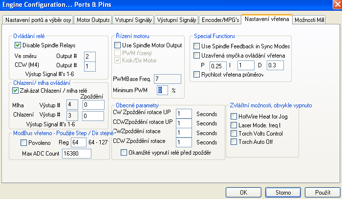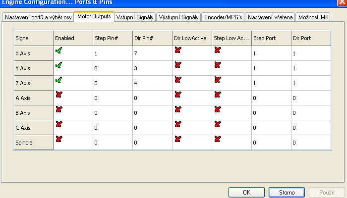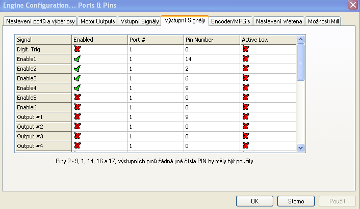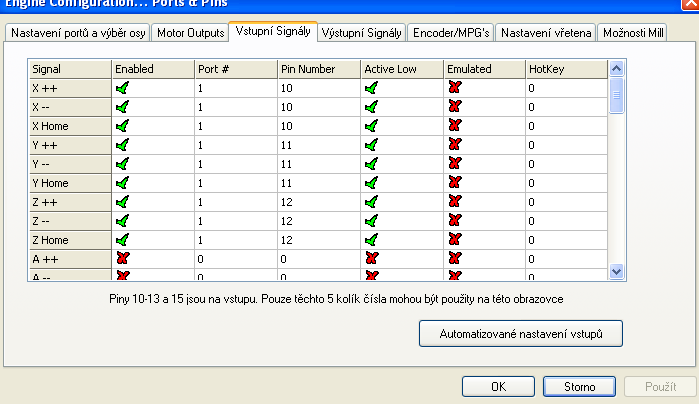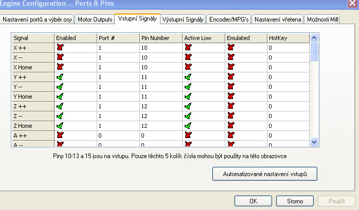 Jak říkám, je to stejné, při zadání portu 0 a nastavení na 0, E-stop reaguje na pin 2 a 3