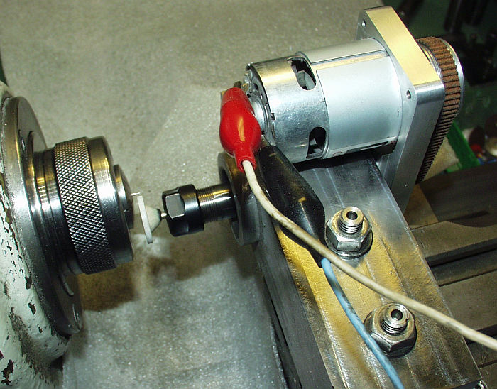 Průměr hřídelky 1mm, průměr čepů 0,5mm mínus pět tisícin, Otáčky obrobku cca 2000, otáčky kotoučku 36000, průměr kotoučku cca 22mm, šířka 3mm průměr stopky 3mm, napájení z lipol baterky.