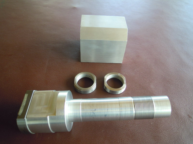 Tak jsem předělal rotační matici. Vytočil jsem nový unašeč a taky jsem udělal nové upevňovací matice. Původně jsem je chtěl dělat z duralu, ale nakonec jsem to zavrhl, protože dural na dural nedělá dobrotu a má snahu se to kousat. Takže jsou železný. Původní dvě matky M30 vážily 250g, tyto dvě nové váží 80g. Celková úspora hmotnosti na rotační matici vč. řemenic bude cca 400g - a to všechno ubylo na průměru 50-70 mm. Takže setrvačné síly budou několikanásobně nižší než v původní verzi. Ještě musím vyrobit dva klíče speciálně pro ty matky. Normální klíč 36 je moc širokej a ničit (ubrušovat) kvůli tomu dva se mi moc nechce. Jo a ta malá řemenice bude nasunutá na konci za těma matkama.