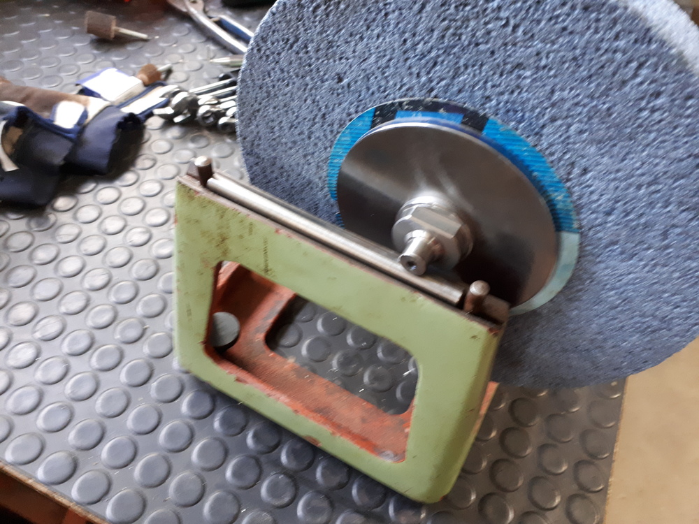 Když orovnáš kotouč a potřebuješ brousit načisto. V kotouči zůstane kupa zrn napůl vylomených, které už nejsou "zalepené" ale jenom drží mezi ostatními. Během chvilky by vylétaly, ale mezitím ti na povrchu nadělají paseku. Řešení : po orovnání vezmi bukovou násadu z paličky / kladívka / a kotouč zlehka přejeď tak dvakrát. Zrna se uvolní a vyletí. Nesmíš tlačit abys kotouč nezasral tím dřevem ! Rusové na tohle dělají takové gumové hranolky s nějakým brusivem. Fungují skvěle, ale strašně to smrdí !!