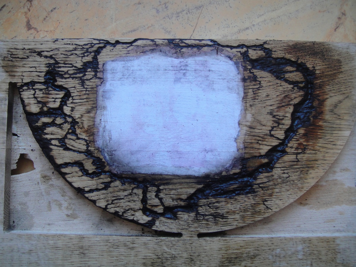 Vypaloval som to vysokym napetim, potom som tie cesticky v dreve zalial svetielkujucim epoxidom, prebrusil a zalial cirim epoxidom.