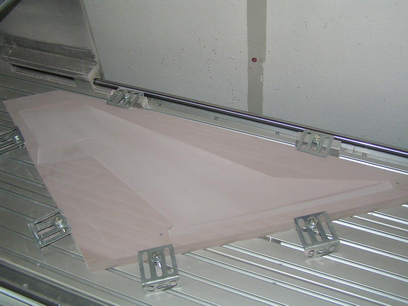 Tak se mi konečně s největší pravděpodobností podařilo odstranit "Chybu komunikace" v Armote. Před FM jsem dal síťový filtr a předělal elektriku stroje. To bohužel k ničemu nevedlo - chyba se stále opakovala - jen další vyhozený peníze a čas. Pak jsem se soustředil na tu klávesnici (má kovový obal). Pokud jsem zapnul vřeteno a dotknul se klávesnicí stroje tak se výrazně změnily navolené otáčky - to je asi špatně... Takže jsem začal vymýšlet jak odizolovat klávesnici. Nejdříve mě napadlo ji nějak uzemnit pak jsem uvažoval, že ji dám mimo stroj - ale to se mi moc nelíbilo. Nakonec jsem byl jednou v noci "osvícen" a napadlo mě úplně jednoduché řešení - použít bezdrátovou klávesnici. Půjčil jsem si ji od kamaráda, ale tam byl problém v tom, že byla na 27Mhz a byl problém s rušením od stroje. Nakonec to vyřešilo pásmo 2.4 Ghz. Nechci to zakřiknout, ale teď jsem nafrézoval cca 6hodin a bez problému. "Chyba komunikace" se objevila již jen jednou, ale ne při obrábění, ale při použití MPG při nastavování nuly. Respektive ne při jeho používání, ale ve chvílce, když jsem zavřel okno MPG. Ale to je asi spíš dotaz na Gravos .... (stalo se to jenom jednou - FM neběžel, KM se nehýbaly) Jinak při obrábění se to již nevyskytlo. Ta klávesnice byla pravděpodobně jako enténa. Na fotkách je výsledek mého snažení - pracovní forma na směrovku z umělého dřeva - rozměry 900 x 400 mm.