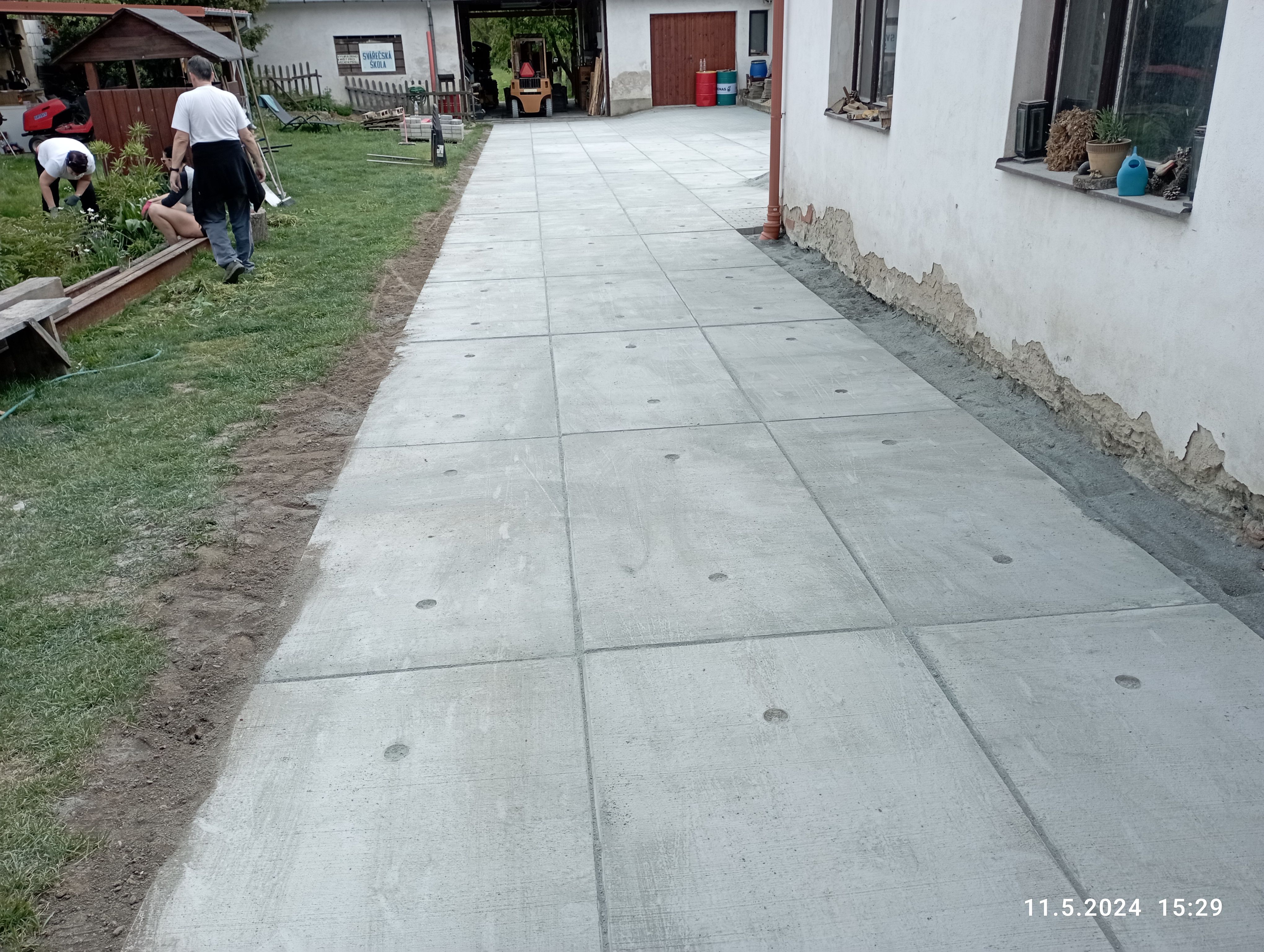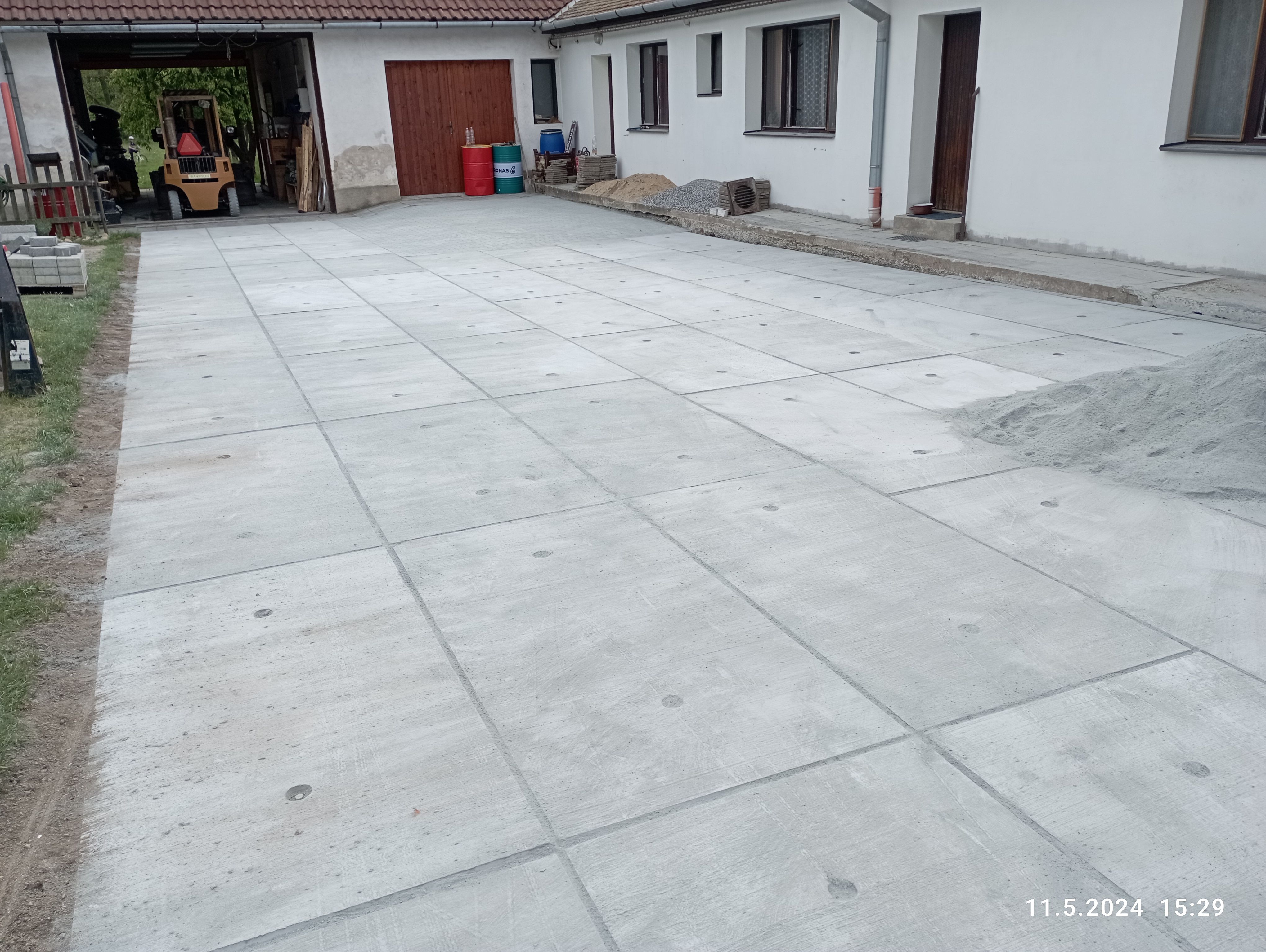 Podklad je v mém případě jen a pouze prosívka. Vím že nějaká frakce 4-8 nebo 8-16 by byla lepší, nicméně jsem si vzal ispiraci z práce, kde dělali prakticky to samé a sázeli panely jen do písku. Jezdí se po nich ješterkami a panely se ani nehnou.