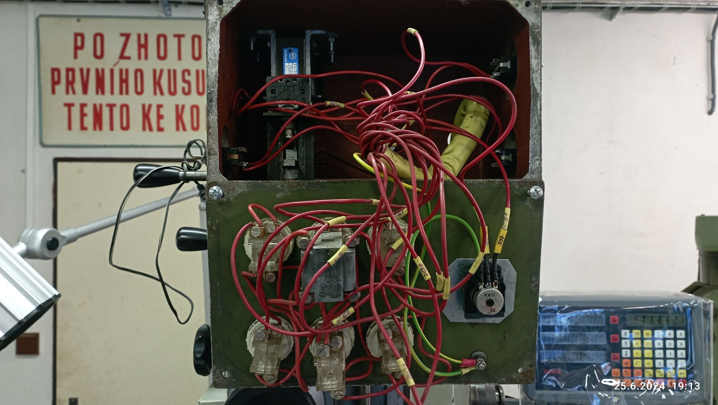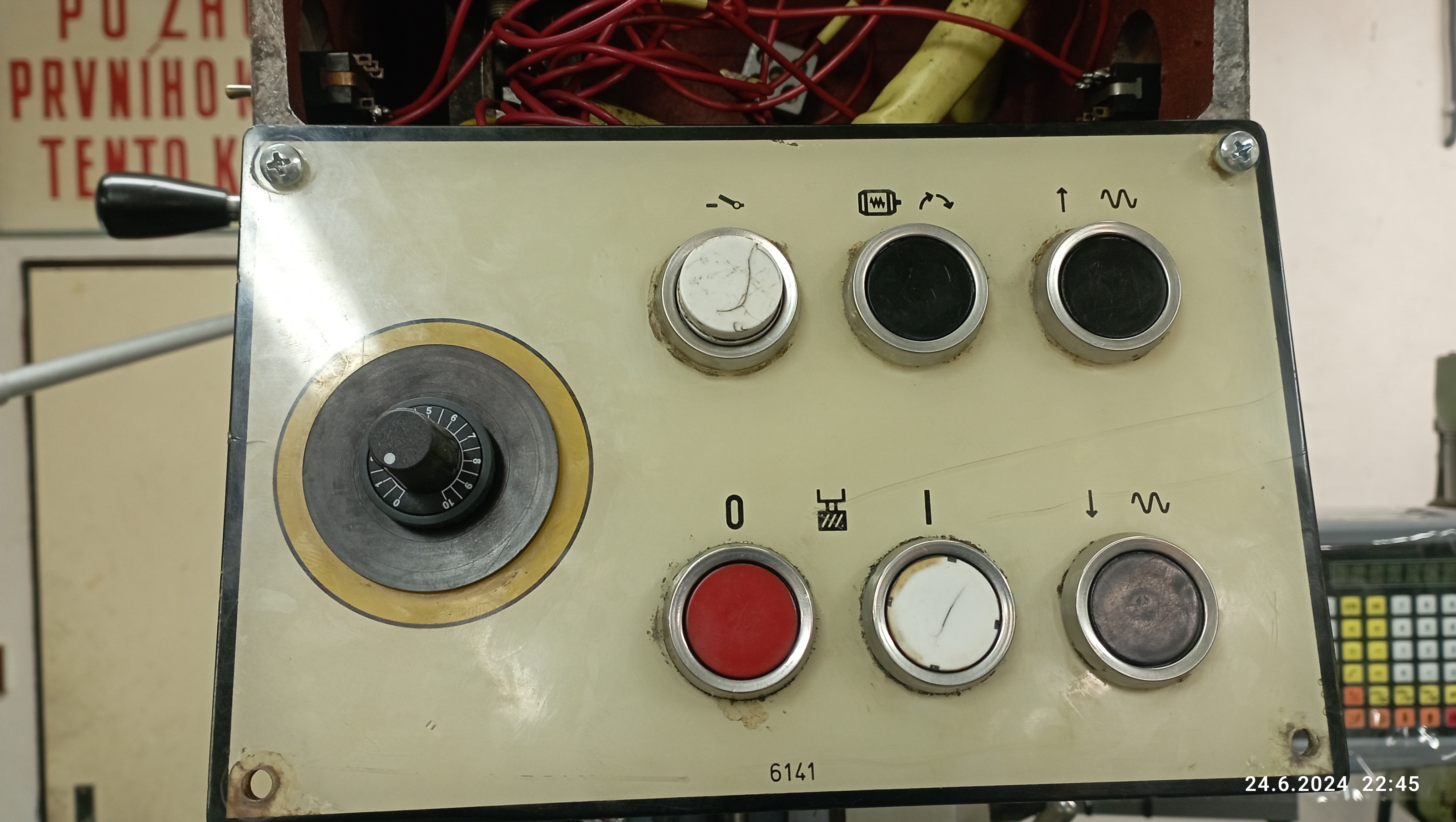 Hned vedle na zdi je total od celé dilny, takže pohoda. Notabene já za celou dobu co jsem v tom dělal nikdy total nepoužil, vždy jen stop tlačítko.