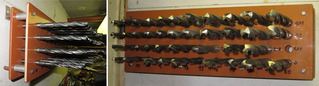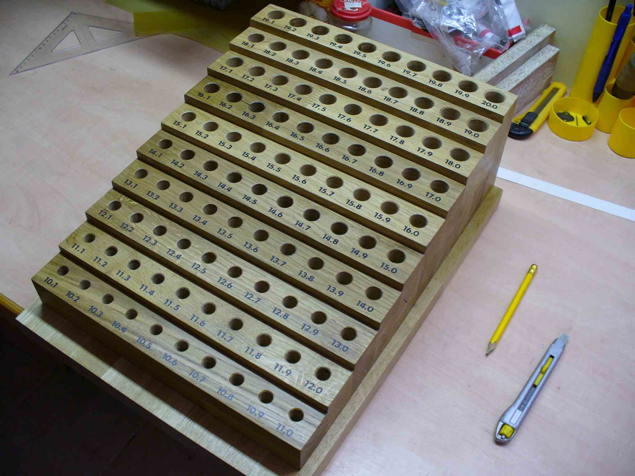 Na morse vrtáky od 10 do 20,75 po 0,25mm se mi osvědčil tenhle. Dvě desky z plastu, distanční sloupky, sešroubováno a pověšeno na zdi. Pravda, tak hezké popisy to nemá, ale slouží to dobře.:D