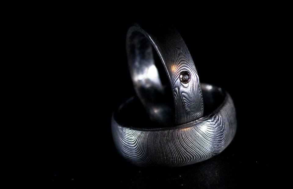 Nebylo to sice dnes, ale pochlubím se :). Snubní prsteny, materiál nerezový damašek.