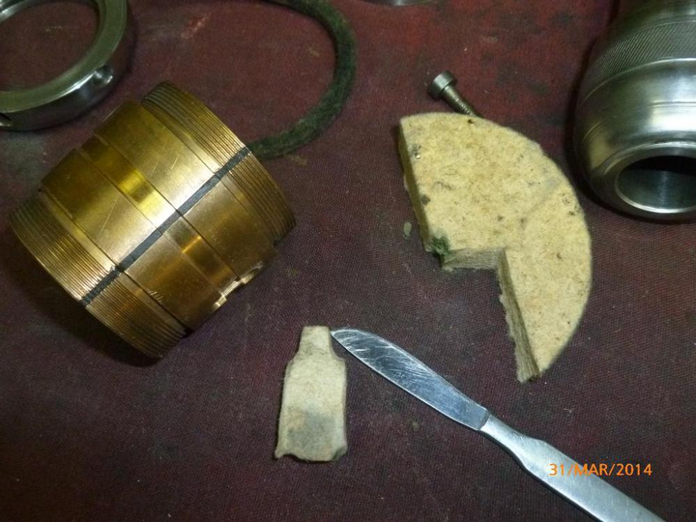 no pokud vím tak jedině sundat vřeteno a rozebrat ty kluzné ložiska ten filc je tam proto aby se při mazání nasákl olejem a během provozu přimazával ložisko ,nachází se v dolní části ložiska a vedou k němu kanálky od mazniček ......