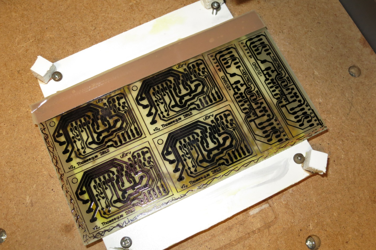 Poprvé jsem v GCODE použil subrutiny (tři - kreslení a dvoje vrtání - pro každý typ plošňáku, zabalený ve čtvrtý, která se volá pro každou instanci plošňáku s posunutými souřadnicemi pomocí G92), celkem zajímavé, přehlednější..