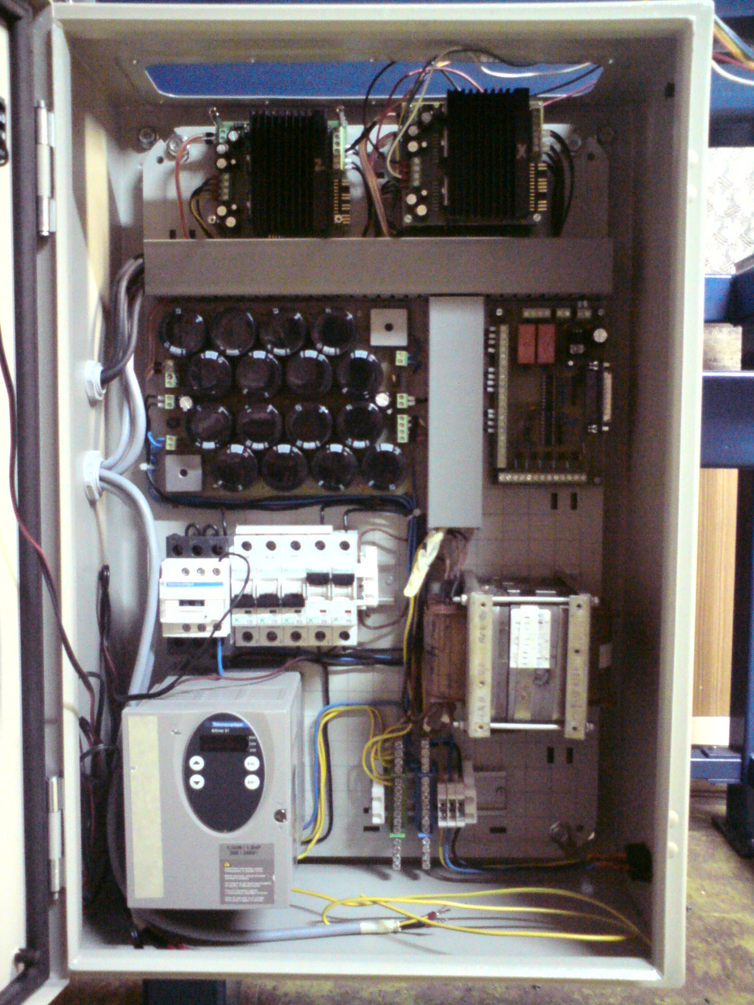 pohled do skříně mmne ujistil že filtrace bude řádná šetnáct kousků si ovšem vezme příslušný nabíjecí proud a tedy dokáže vyhodit jističe dost "daleko" pak přijde na řadu softstart na vstup trafa...dlouho jsem si stroj prohlížela,protože se mi celkově líbí :D :P